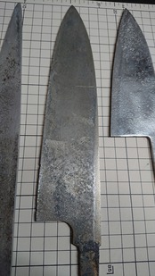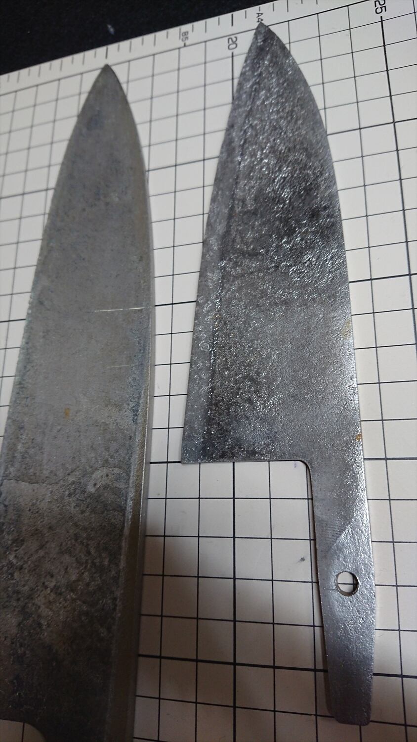 当方で錆落としはしたものの、腐食痕がひどく、研ぎ直しを断念した包丁になります。