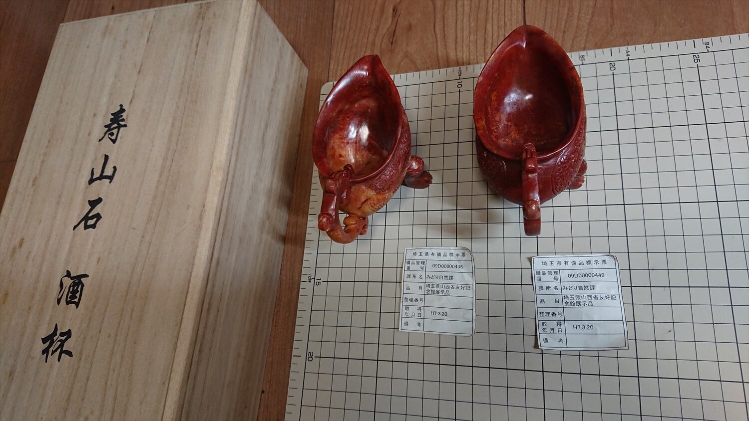 寿山石 酒盃×2 木箱付き