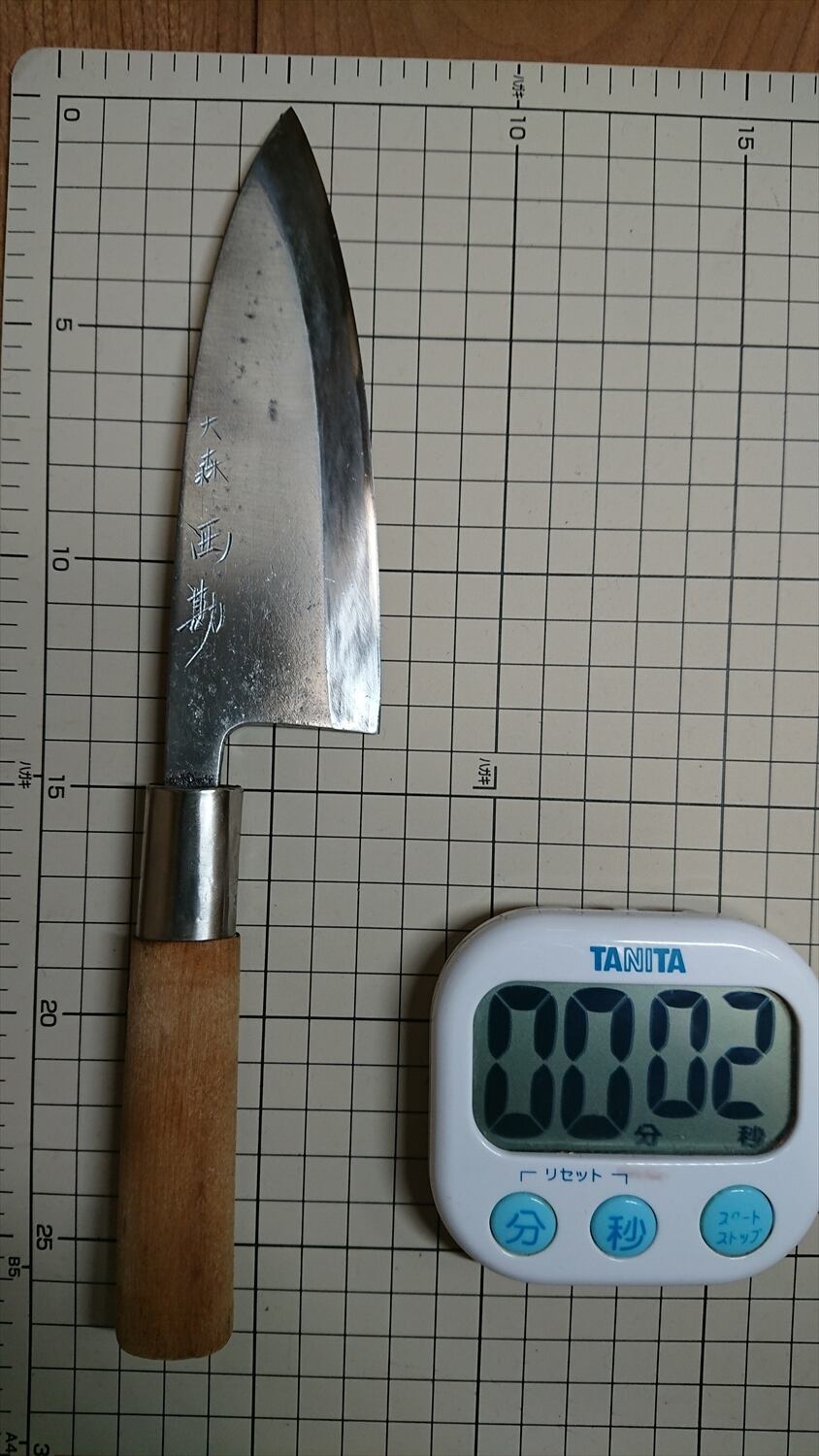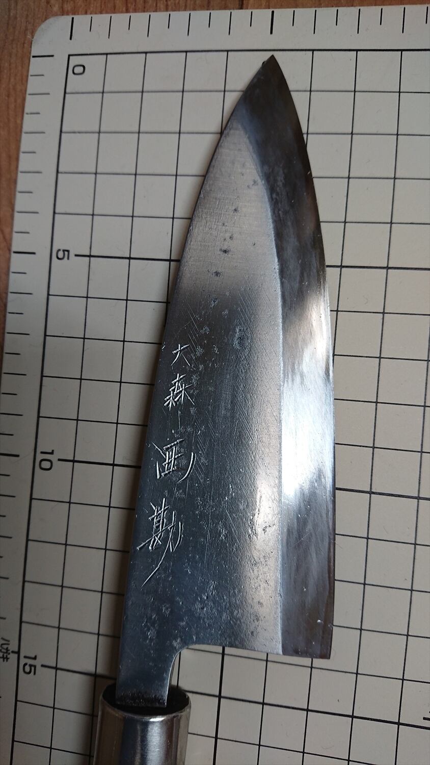出刃包丁 大森西勘 刃長約135mm(中古 o-120 「極み」処理済)+1特典付