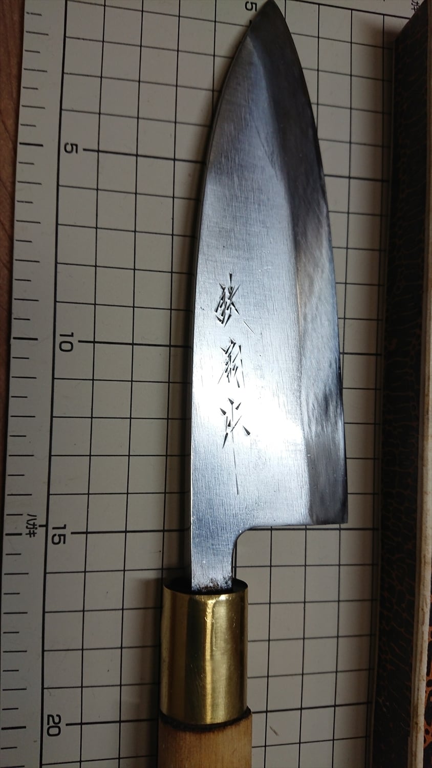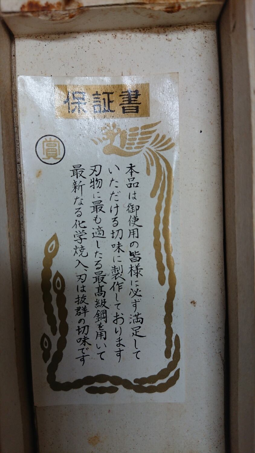 他 :曲がり無し。刃こぼれ無し。腐食やサビは可能な限り除去済み(痕あり)。口金上部に若干割れ有り。箱あり(汚れや破れ少々あり)。