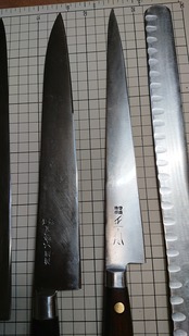 ・商品によっては刃線付近に取り切れない腐食痕があり、一部若干の引っかかりがある場合があります。普通に料理するには気にならないレベルかと思います。中古品の性質上ご理解ください。