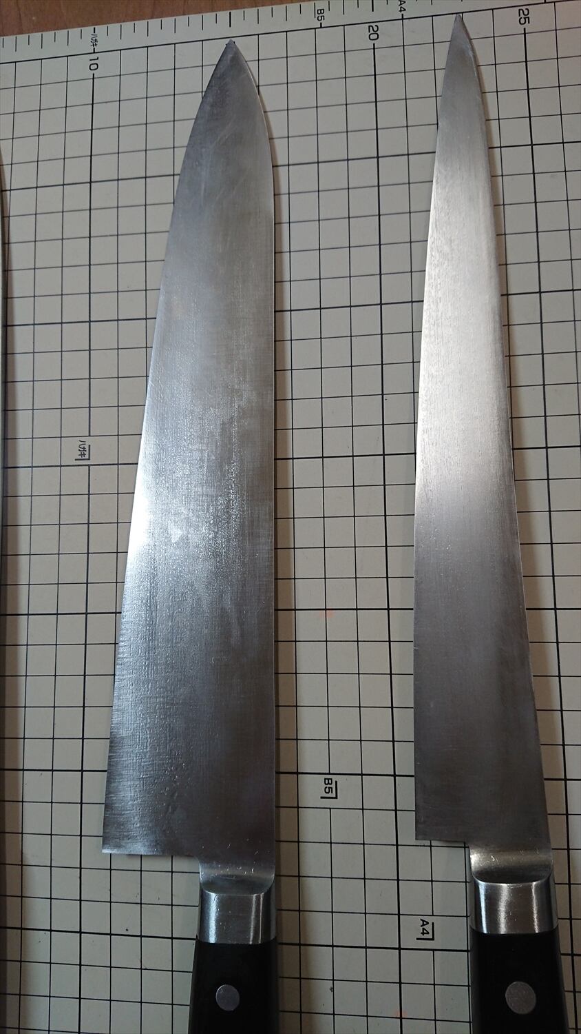 ・商品によっては刃線付近に取り切れない腐食痕があり、一部若干の引っかかりがある場合があります。普通に料理するには気にならないレベルかと思います。中古品の性質上ご理解ください。