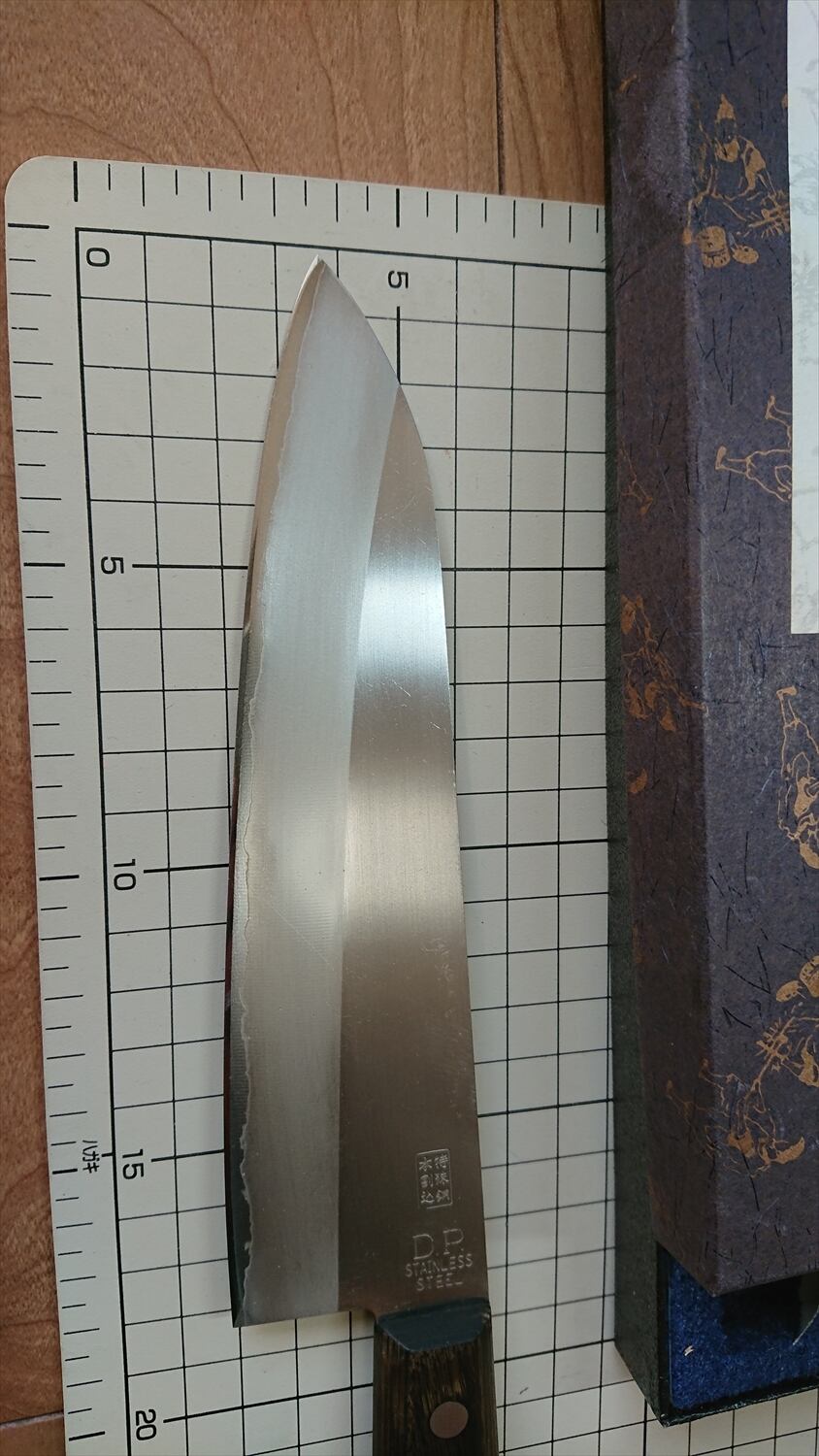 他 :刃こぼれ無し。箱付き(汚れや破れあり)。腐食やサビは可能な限り除去済み(痕あり)。