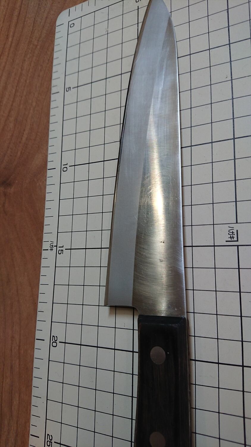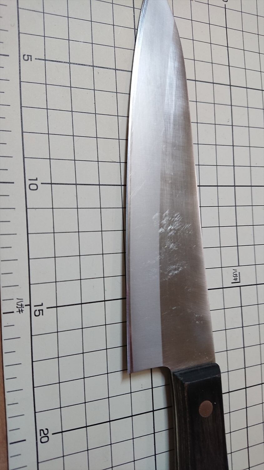 ・商品によっては刃線付近に取り切れない腐食痕があり、一部若干の引っかかりがある場合があります。普通に料理するには気にならないレベルかと思います。中古品の性質上ご理解ください。