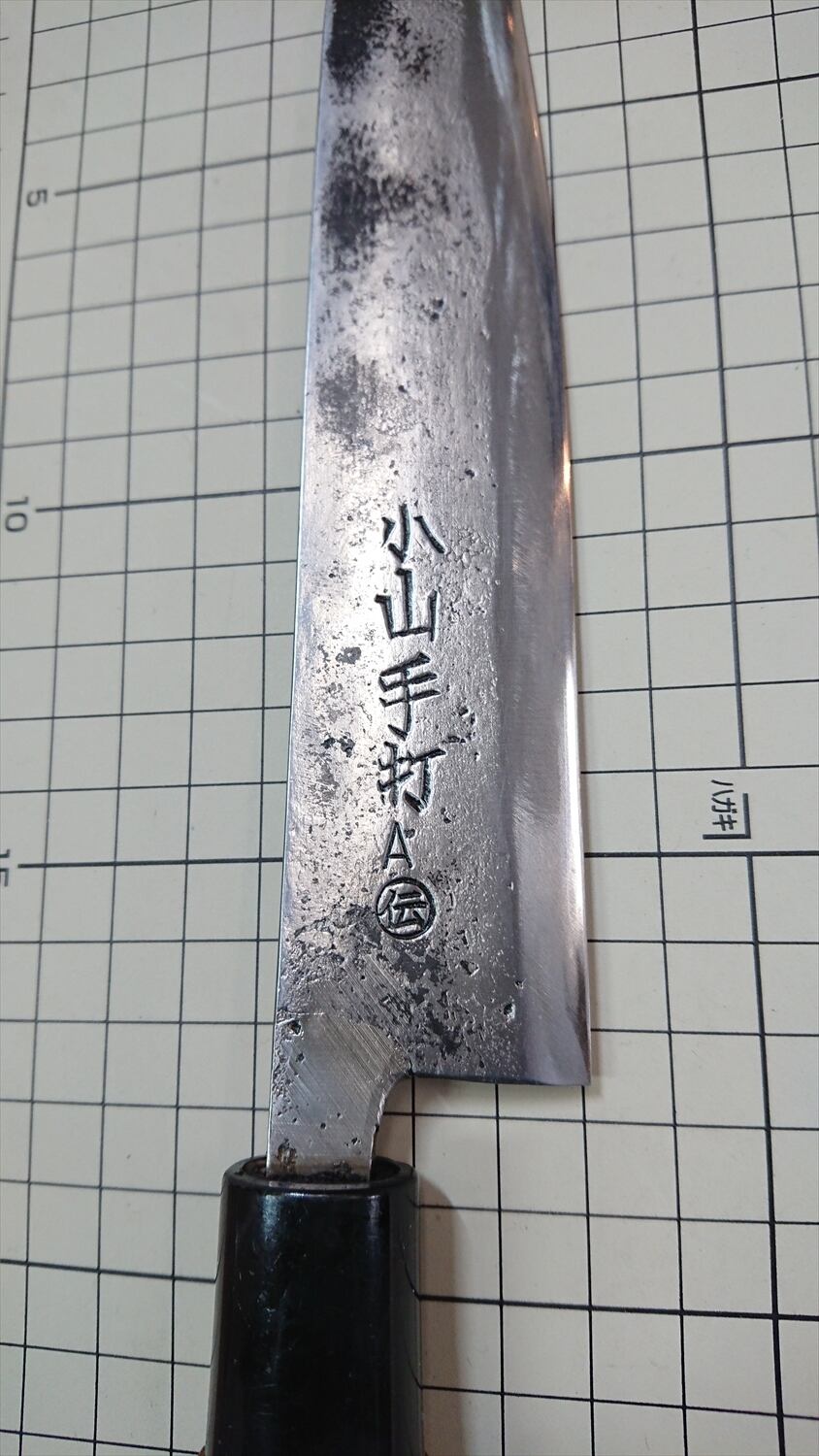 他 :刃こぼれ無し。腐食やサビは可能な限り除去済み(痕あり。一点モノの模様だと思ってご堪能ください)。黒い部分は汚れではなく、黒塗装の名残です。