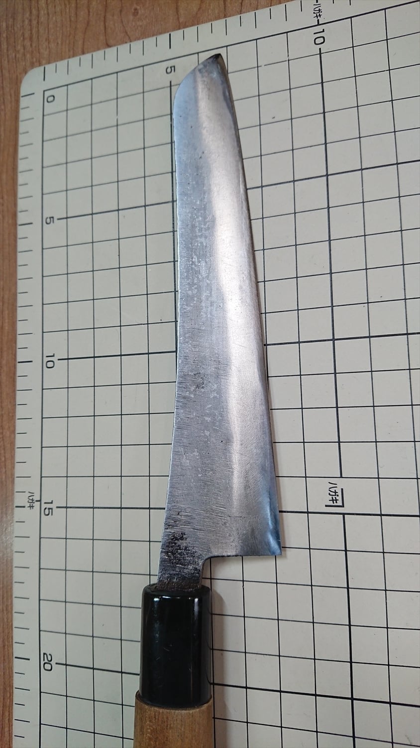 ・商品によっては刃線付近に取り切れない腐食痕があり、一部若干の引っかかりがある場合があります。普通に料理するには気にならないレベルかと思います。中古品の性質上ご理解ください。