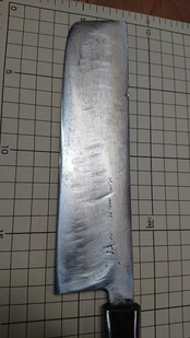 ・商品によっては刃線付近に取り切れない腐食痕があり、一部若干の引っかかりがある場合があります。普通に料理するには気にならないレベルかと思います。また、曲がりや反りがあるものはできる限り直線に修正しておりますが、機械加工のような真直線にはなりません。また、修正しても保管中に微妙に曲がりや反りが出る場合があります。中古品包丁の性質上ご理解ください。