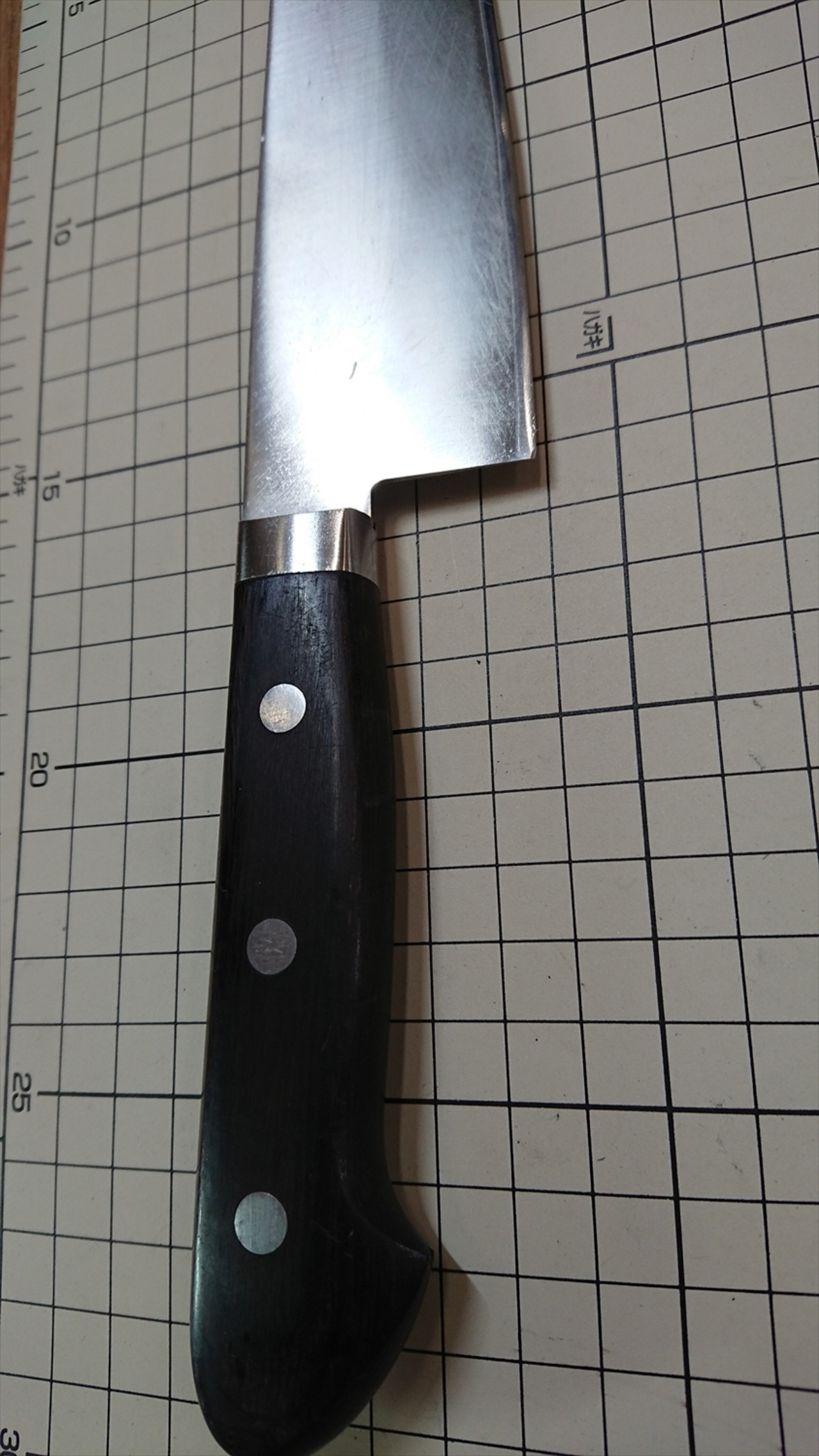 ・商品によっては刃線付近に取り切れない腐食痕があり、一部若干の引っかかりがある場合があります。普通に料理するには気にならないレベルかと思います。また、曲がりや反りがあるものはできる限り直線に修正しておりますが、機械加工のような真直線にはなりません。また、修正しても保管中に微妙に曲がりや反りが出る場合があります。中古品包丁の性質上ご理解ください。