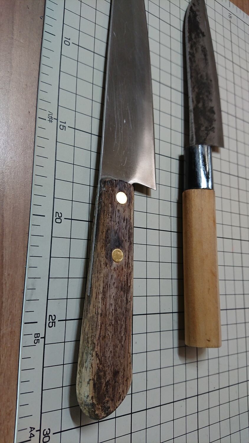 ・商品によっては刃線付近に取り切れない腐食痕があり、一部若干の引っかかりがある場合があります。普通に料理するには気にならないレベルかと思います。また、曲がりや反りがあるものはできる限り直線に修正しておりますが、機械加工のような真直線にはなりません。また、修正しても保管中に微妙に曲がりや反りが出る場合があります。中古品包丁の性質上ご理解ください。
