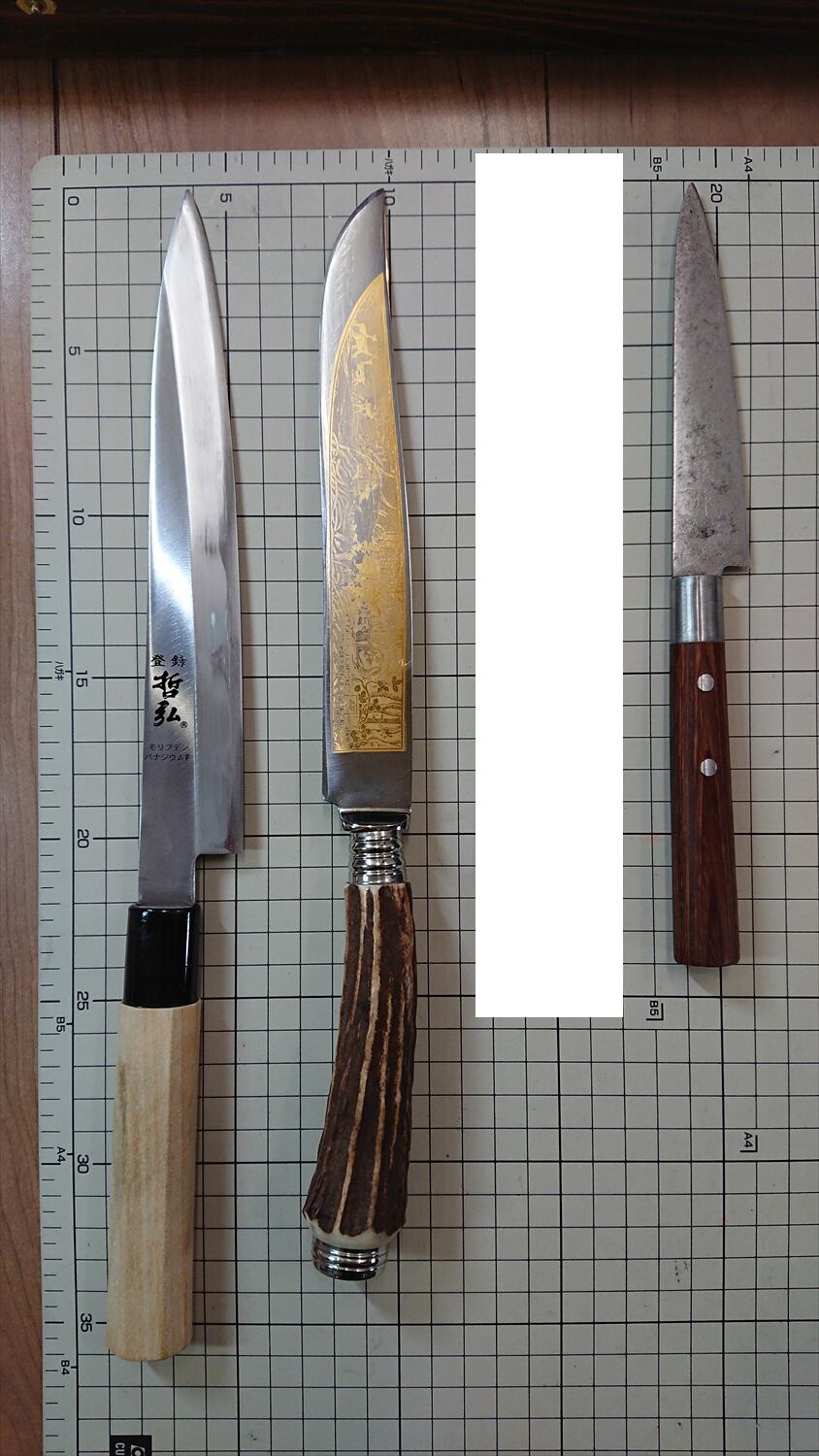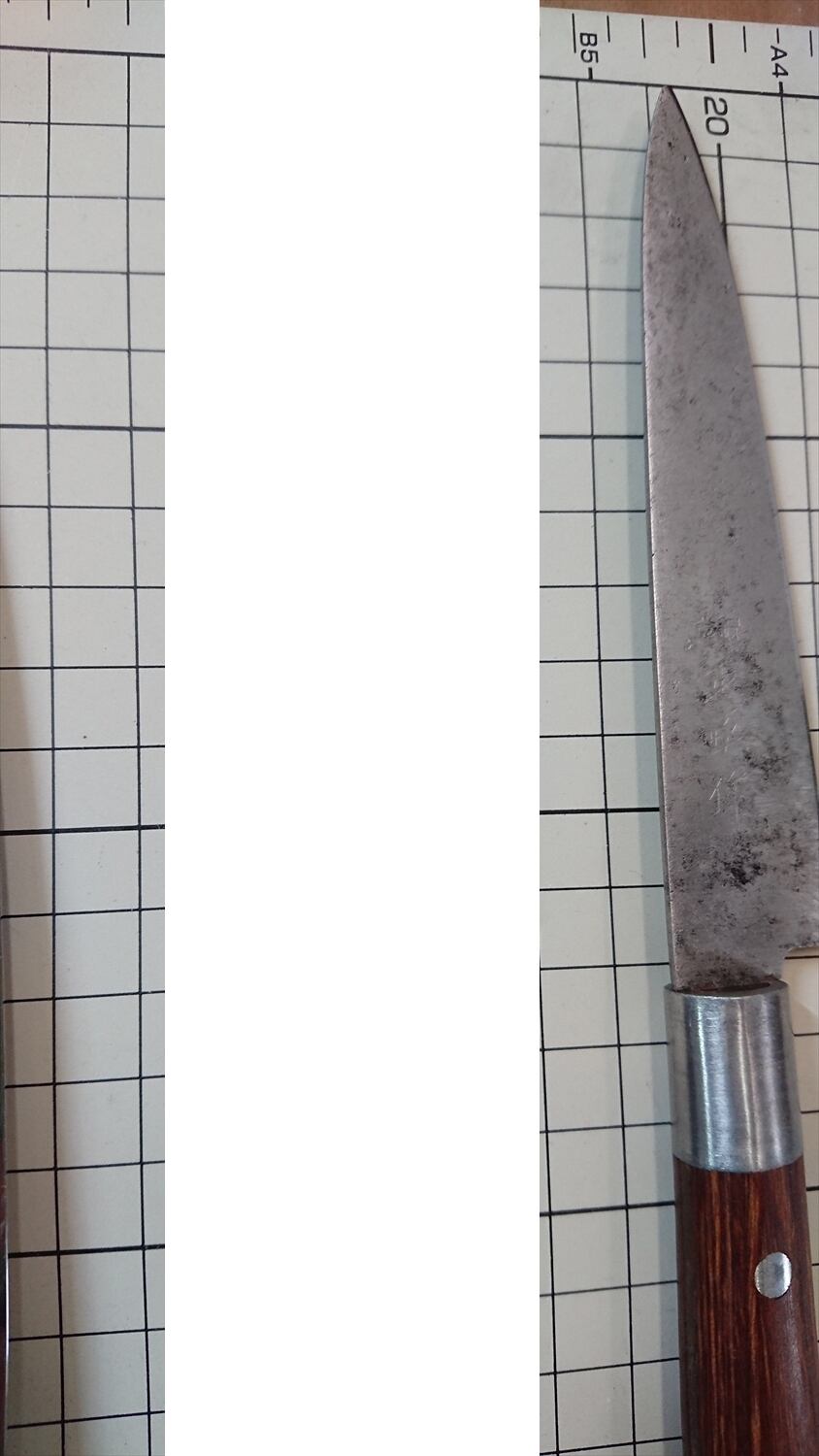 ・商品によっては刃線付近に取り切れない腐食痕があり、一部若干の引っかかりがある場合があります。普通に料理するには気にならないレベルかと思います。また、曲がりや反りがあるものはできる限り直線に修正しておりますが、機械加工のような真直線にはなりません。また、修正しても保管中に微妙に曲がりや反りが出る場合があります。中古品包丁の性質上ご理解ください。