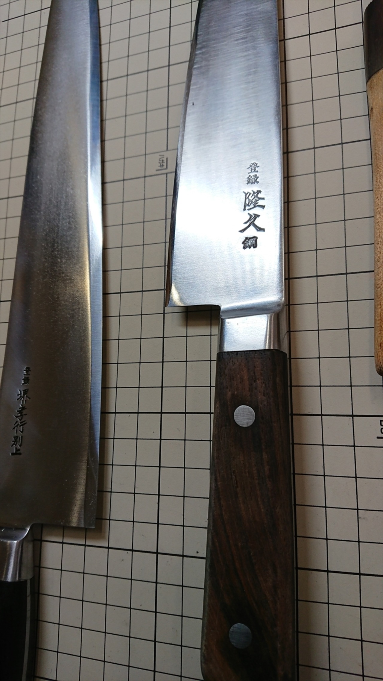 ・商品によっては刃線付近に取り切れない腐食痕があり、一部若干の引っかかりがある場合があります。普通に料理するには気にならないレベルかと思います。また、曲がりや反りがあるものはできる限り直線に修正しておりますが、機械加工のような真直線にはなりません。また、修正しても保管中に微妙に曲がりや反りが出る場合があります。中古品包丁の性質上ご理解ください。