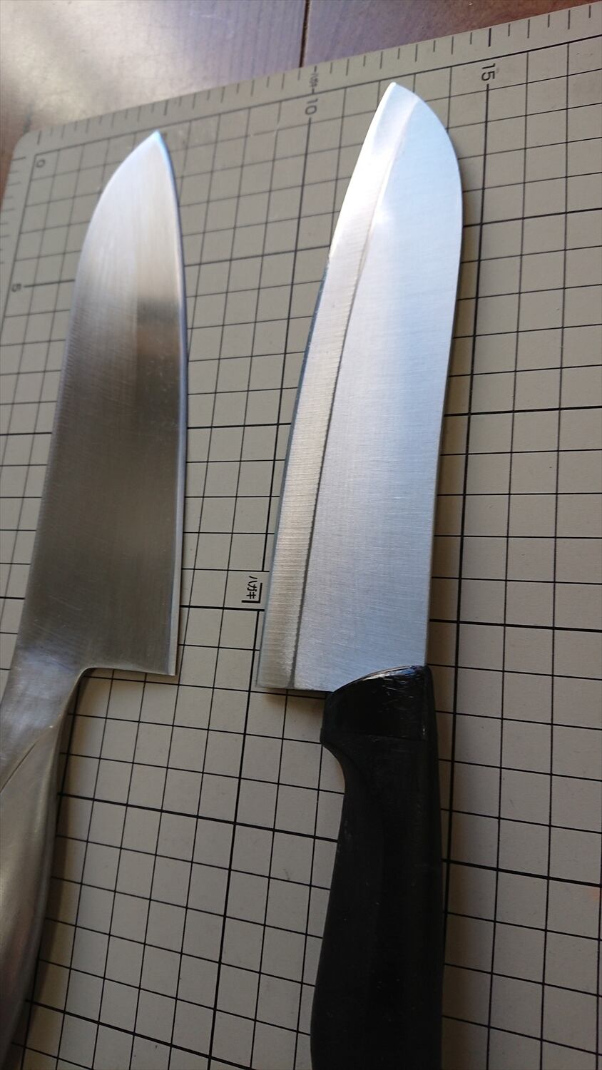 ・商品によっては刃線付近に取り切れない腐食痕が残り、若干の引っかかりがある場合があります。また、保管中に微妙に曲がりや反りが出る場合が稀にあります。中古包丁の性質上ご理解ください。