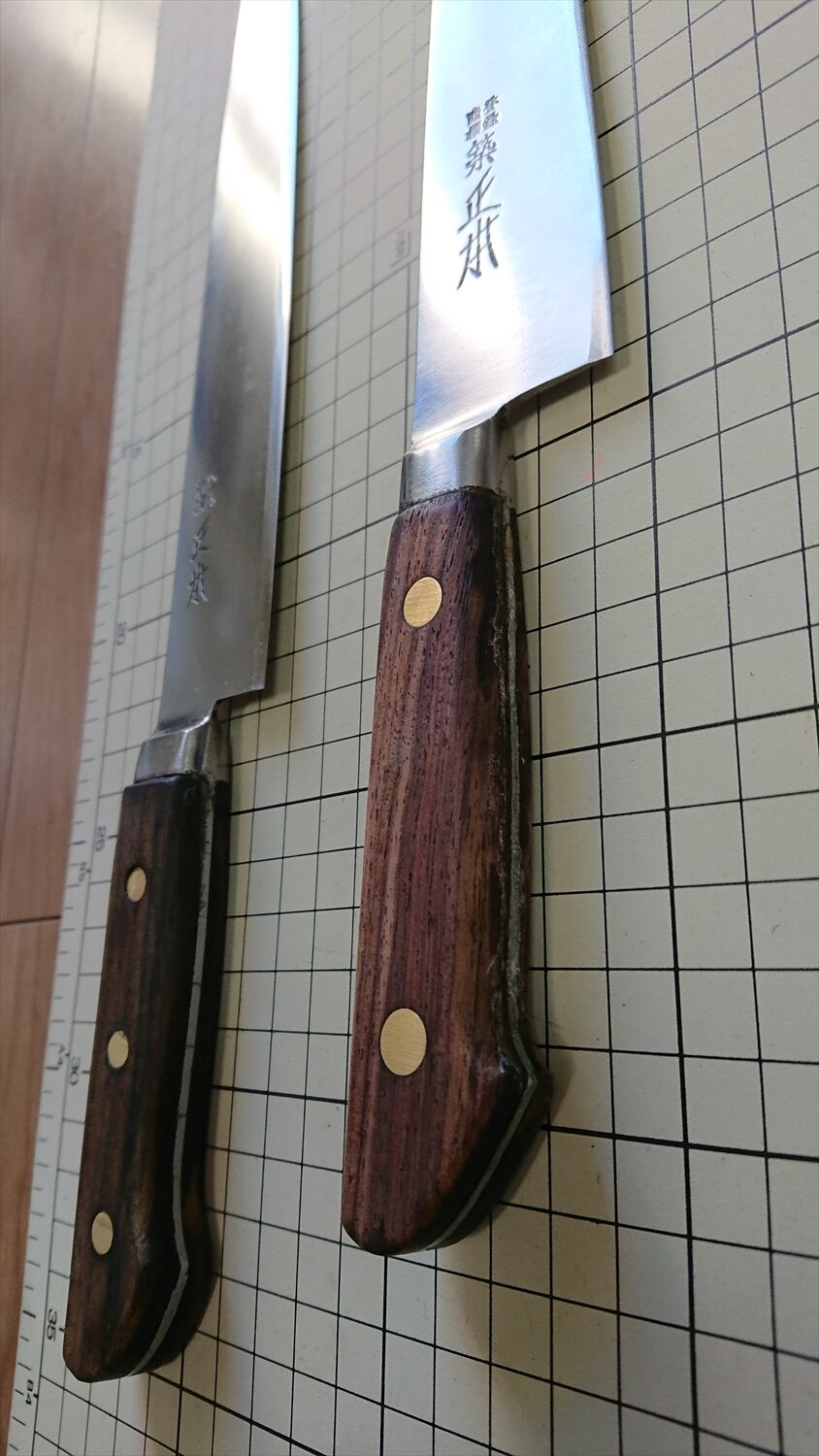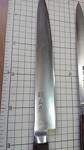 ・商品によっては刃線付近に取り切れない腐食痕が残り、若干の引っかかりがある場合があります。また、保管中に微妙に曲がりや反りが出る場合が稀にあります。中古包丁の性質上ご理解ください。