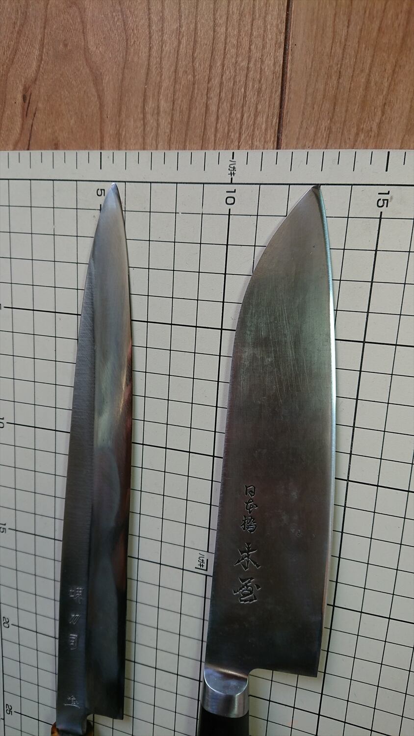 ・商品によっては刃線付近に取り切れない腐食痕が残り、若干の引っかかりがある場合があります。また、保管中に微妙に曲がりや反りが出る場合が稀にあります。中古包丁の性質上ご理解ください。