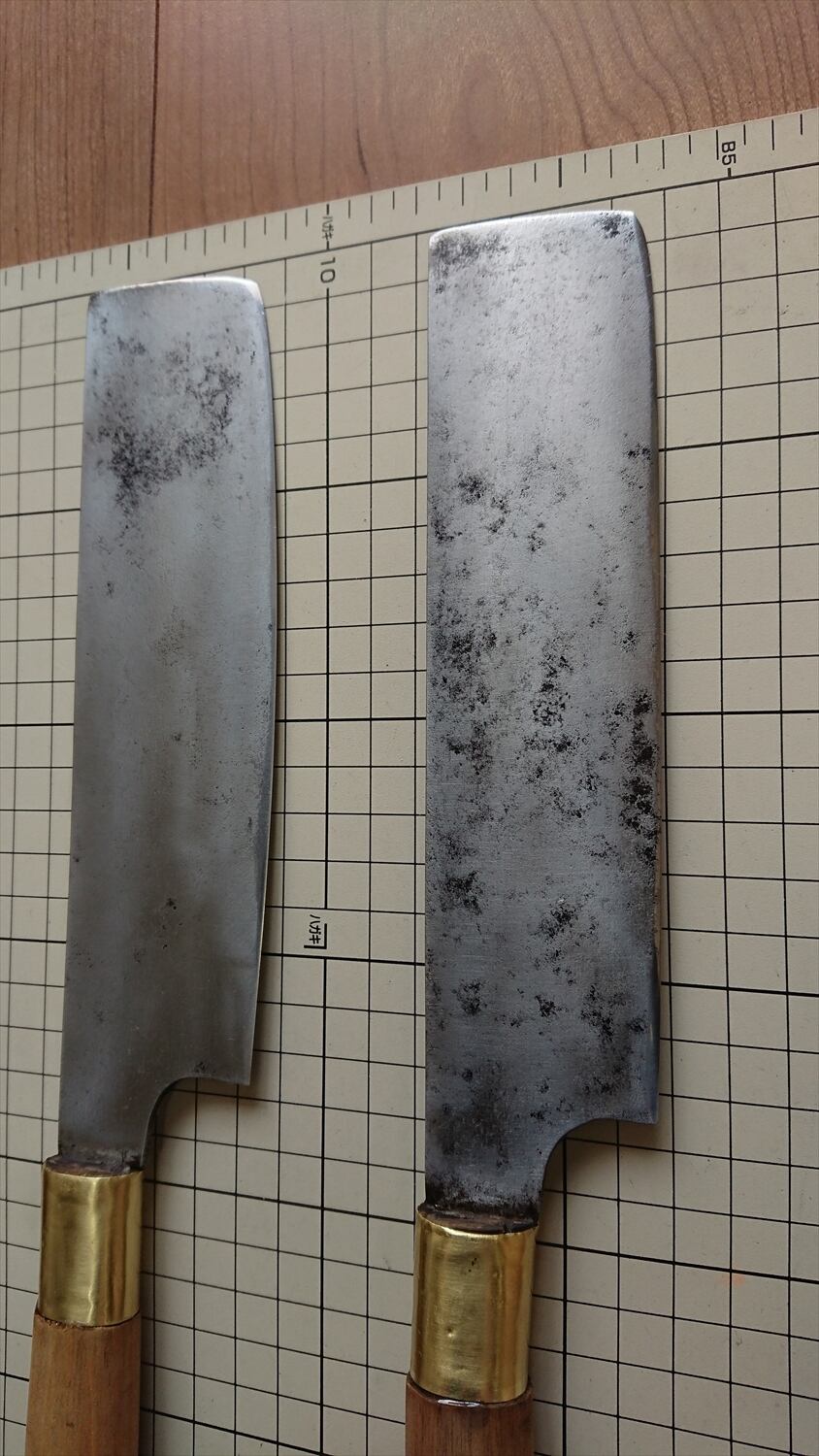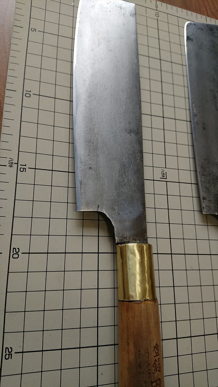 ・商品によっては刃線付近に取り切れない腐食痕が残り、若干の引っかかりがある場合があります。また、保管中に微妙に曲がりや反りが出る場合が稀にあります。中古包丁の性質上ご理解ください。