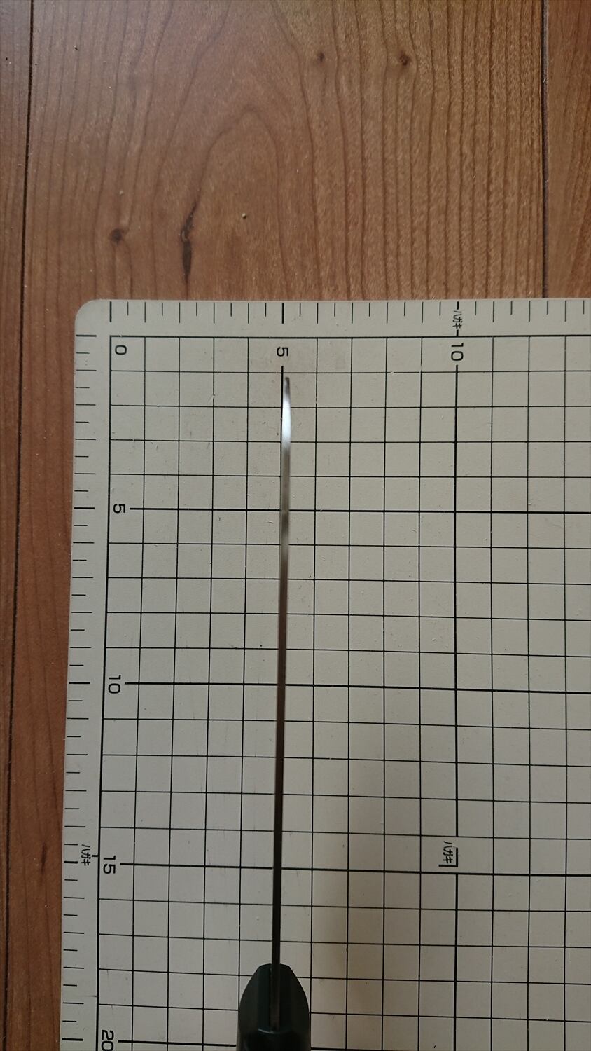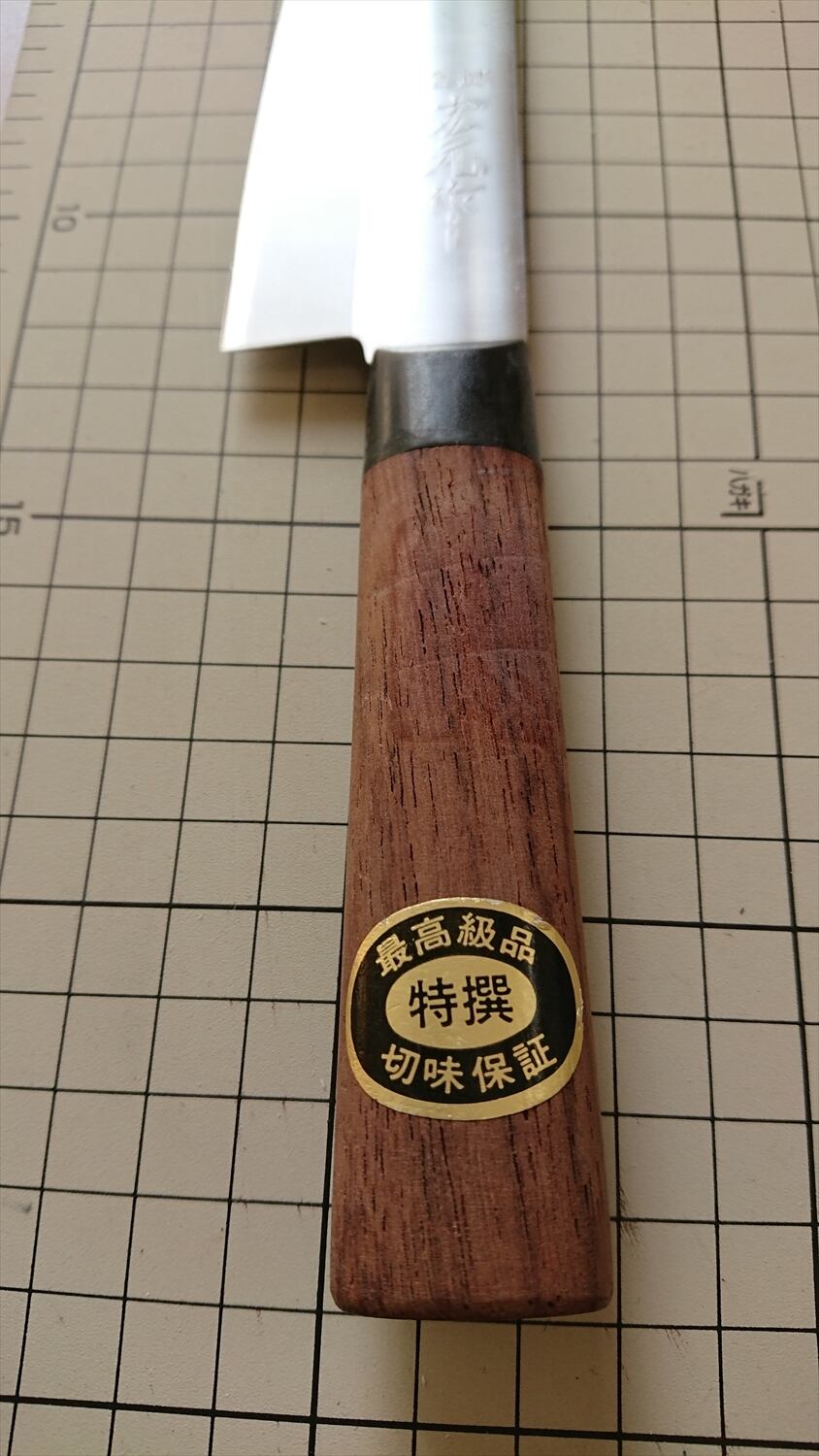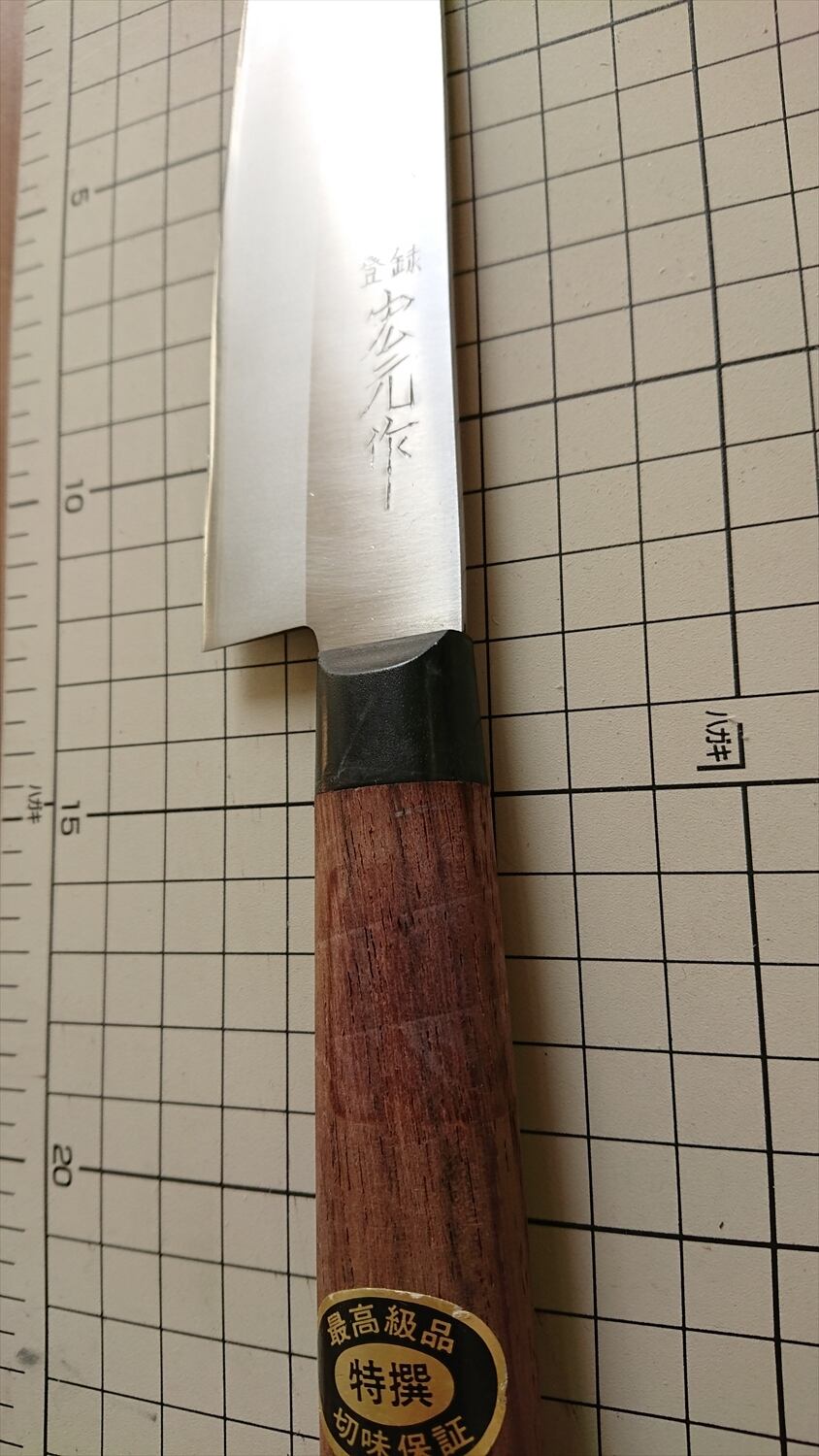 ・商品によっては刃線付近に取り切れない腐食痕が残り、若干の引っかかりがある場合があります。また、保管中に微妙に曲がりや反りが出る場合が稀にあります。中古包丁の性質上ご理解ください。