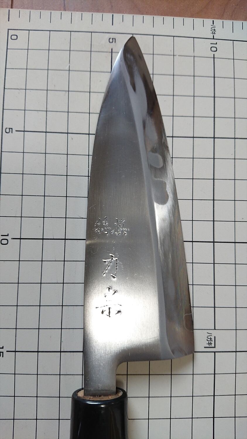 ・商品によっては刃線付近に取り切れない腐食痕が残り、若干の引っかかりがある場合があります。また、保管中に微妙に曲がりや反りが出る場合が稀にあります。中古包丁の性質上ご理解ください。