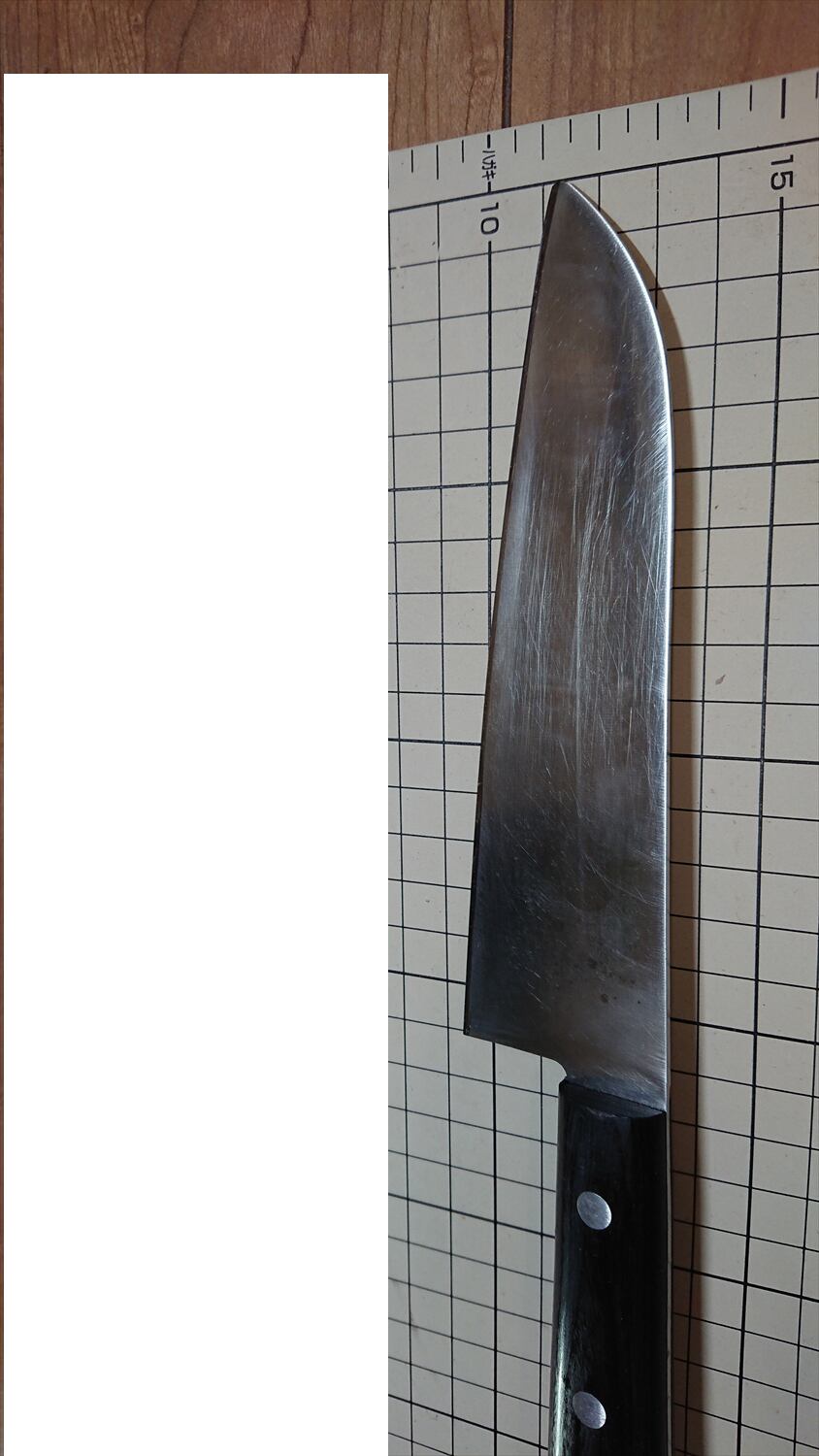 ・商品によっては刃線付近に取り切れない腐食痕が残り、若干の引っかかりがある場合があります。また、保管中に微妙に曲がりや反りが出る場合が稀にあります。中古包丁の性質上ご理解ください。