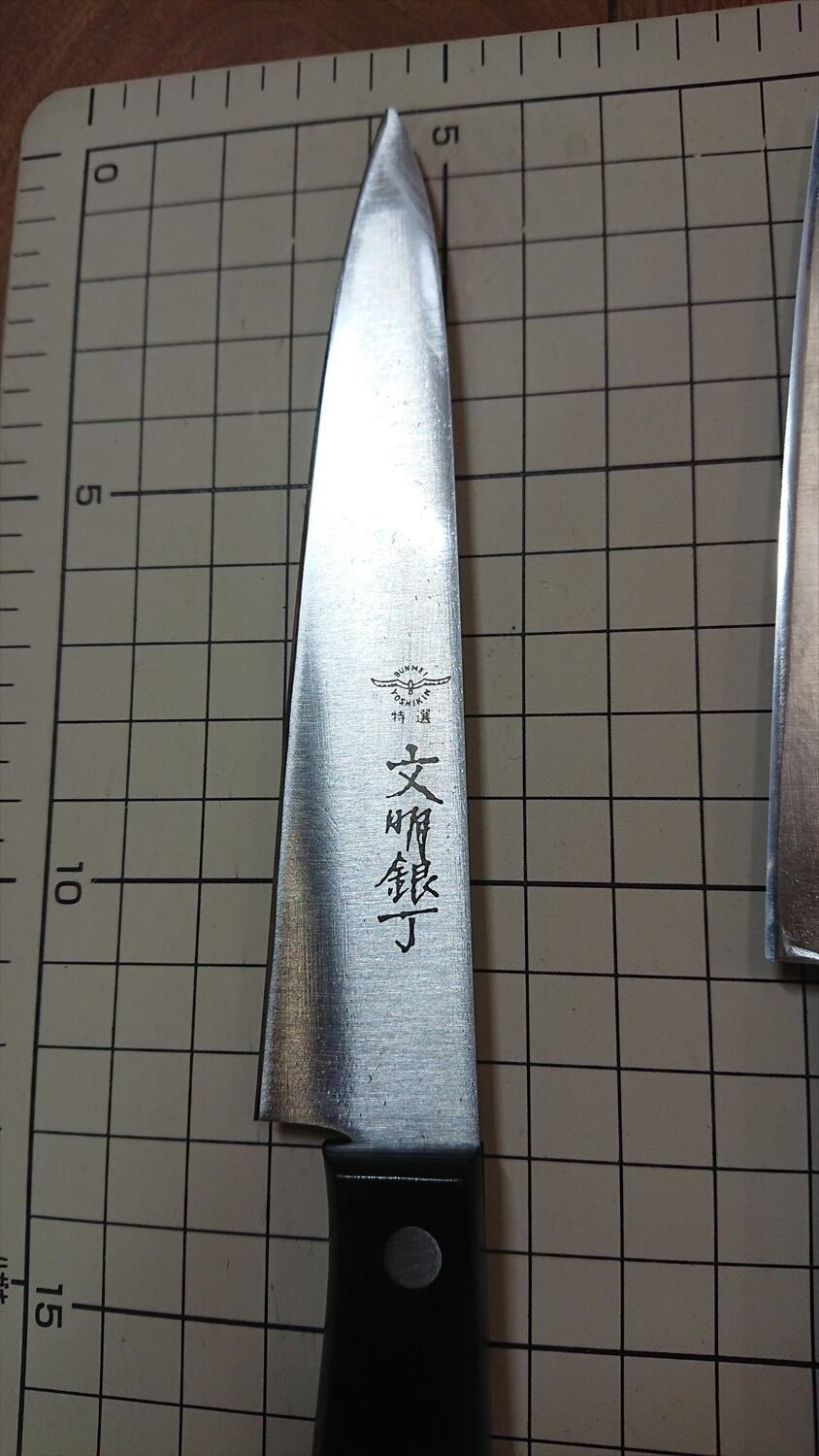 ・商品によっては刃線付近に取り切れない腐食痕が残り、若干の引っかかりがある場合があります。また、保管中に微妙に曲がりや反りが出る場合が稀にあります。中古包丁の性質上ご理解ください。