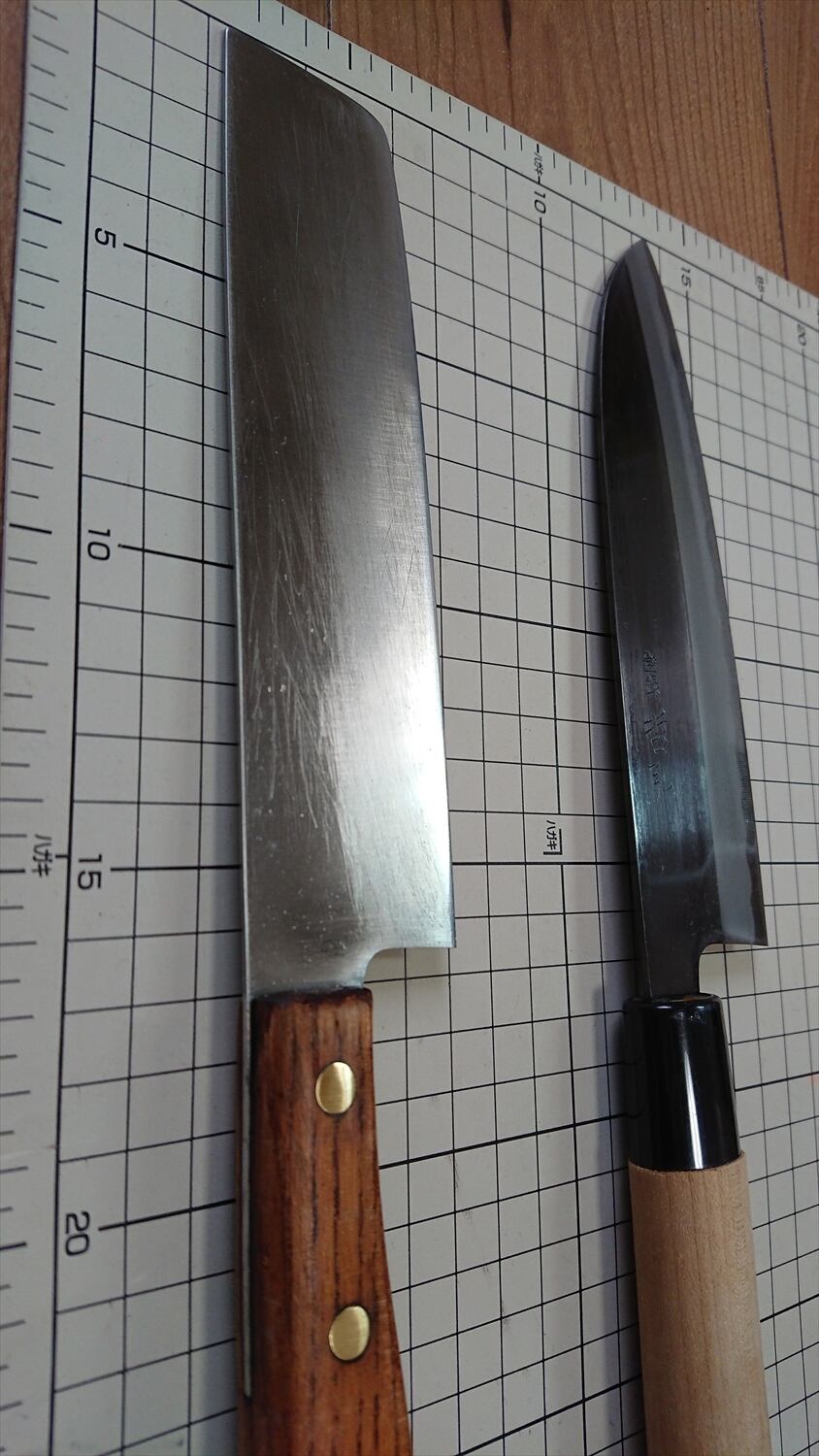 ・商品によっては刃線付近に取り切れない腐食痕が残り、若干の引っかかりがある場合があります。また、保管中に微妙に曲がりや反りが出る場合が稀にあります。中古包丁の性質上ご理解ください。