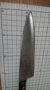 ・商品によっては刃線付近に取り切れない腐食痕が残り、若干の引っかかりがある場合があります。また、保管中に微妙に曲がりや反りが出る場合が稀にあります。中古包丁の性質上ご理解ください。