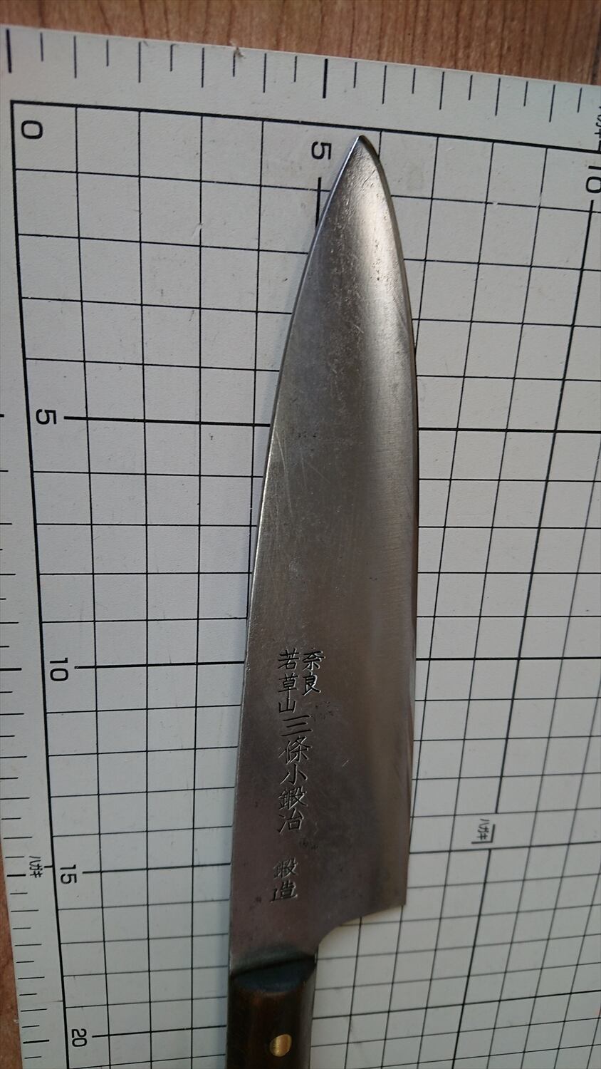 切れる 三徳包丁 奈良若草 三条小鍛冶 刃長約165mm 中古o498+2特典