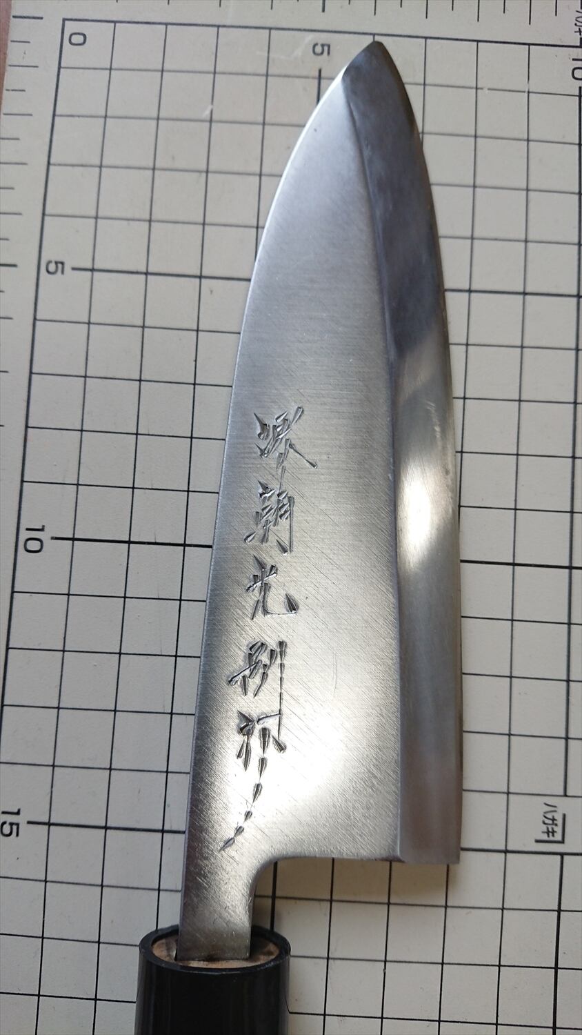 ・商品によっては刃線付近に取り切れない腐食痕が残り、若干の引っかかりがある場合があります。また、保管中に微妙に曲がりや反りが出る場合が稀にあります。中古包丁の性質上ご理解ください。