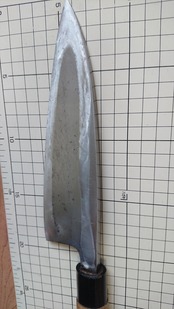 ・商品によっては刃線付近に取り切れない腐食痕が残り、若干の引っかかりがある場合があります。また、保管中に微妙に曲がりや反りが出る場合が稀にあります。中古包丁の性質上ご理解ください。