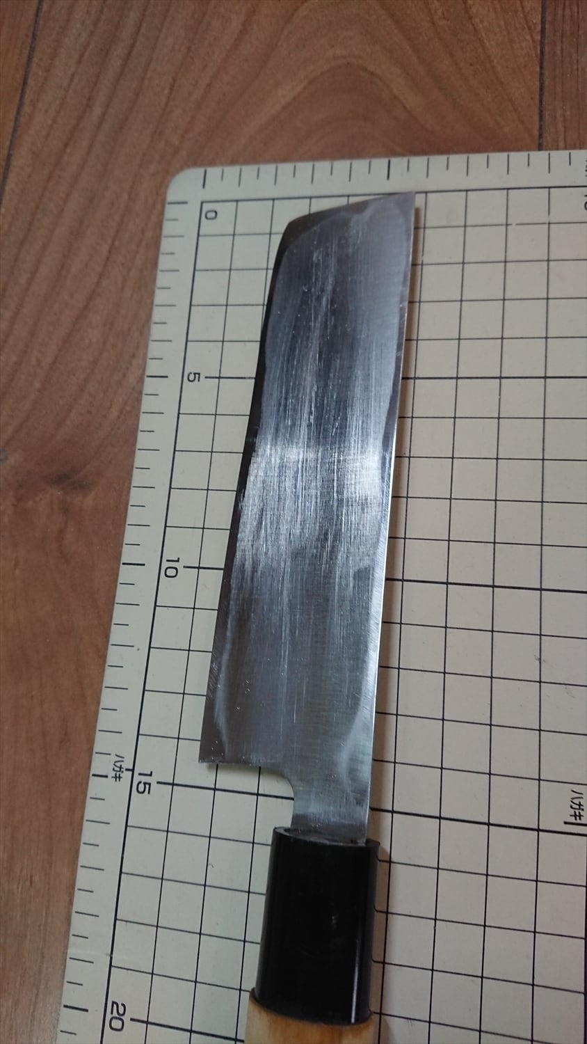 ・商品によっては刃線付近に取り切れない腐食痕が残り、若干の引っかかりがある場合があります。また、保管中に微妙に曲がりや反りが出る場合が稀にあります。中古包丁の性質上ご理解ください。