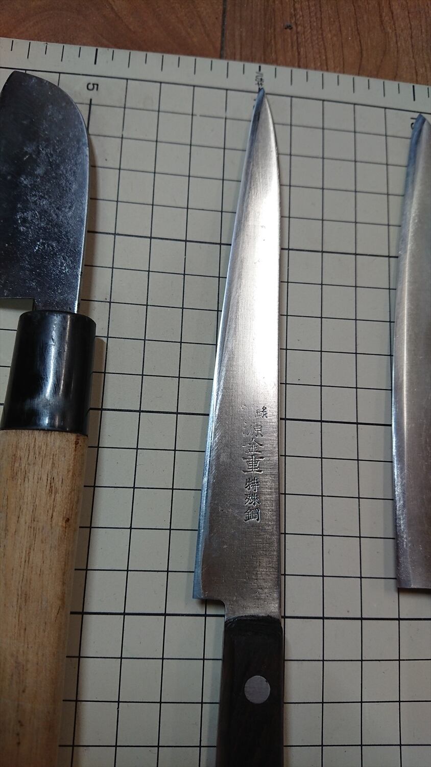 ・商品によっては刃線付近に取り切れない腐食痕が残り、若干の引っかかりがある場合があります。また、保管中に微妙に曲がりや反りが出る場合が稀にあります。中古包丁の性質上ご理解ください。