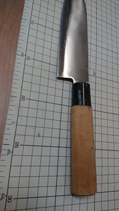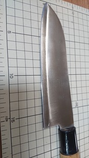 ・商品によっては刃線付近に取り切れない腐食痕が残り、若干の引っかかりがある場合があります。また、保管中に微妙に曲がりや反りが出る場合が稀にあります。中古包丁の性質上ご理解ください。