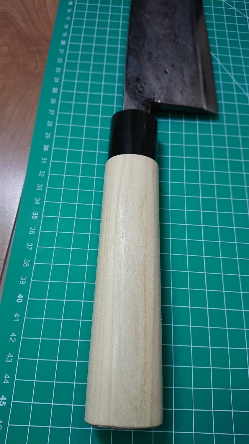 ① o623/銘:築地正本/大出刃包丁(片刃)/峰厚:8.8/重量:624/作り:鋼?/他:柄は当方にて新品(他銘)と交換済み