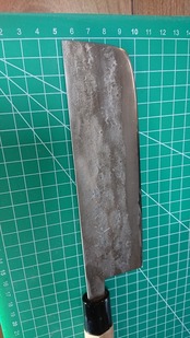 1. o679/銘:?/菜切包丁(両刃)/峰厚:4.9/重量:152/作り:青鋼 ○二 秘造/他: