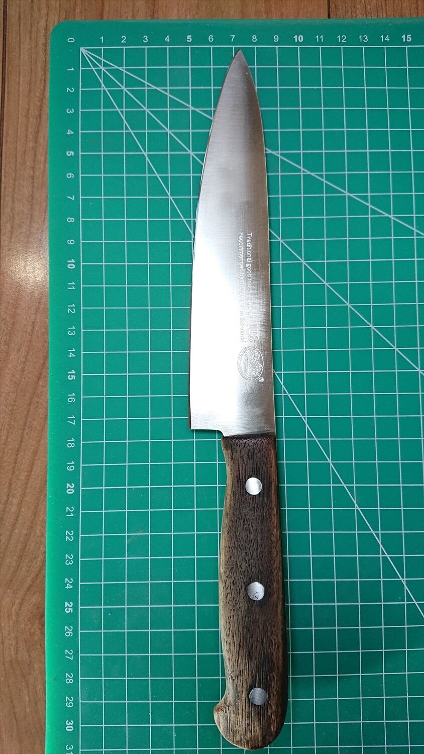 1. o751/銘:VICTORINOX/三徳包丁(両刃)/峰厚:1.9/重量:105/作り:ステンレス?/他: