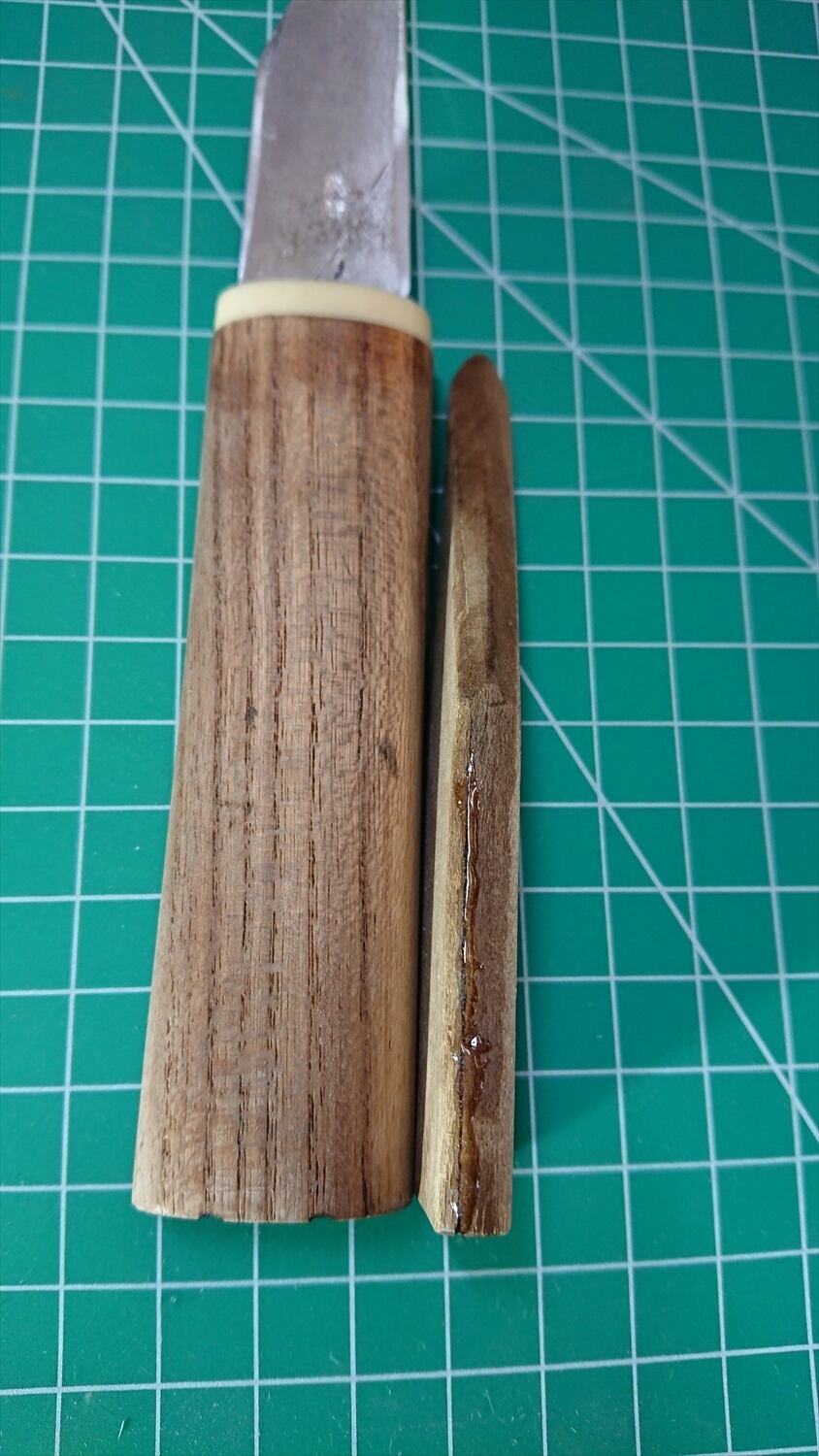 1. o696/銘:義尚/特殊包丁(片刃)/峰厚:3.3/重量:52/作り:鋼?/他:鞘付き。割れあるが当方にて補修済。若干締りがきつい。