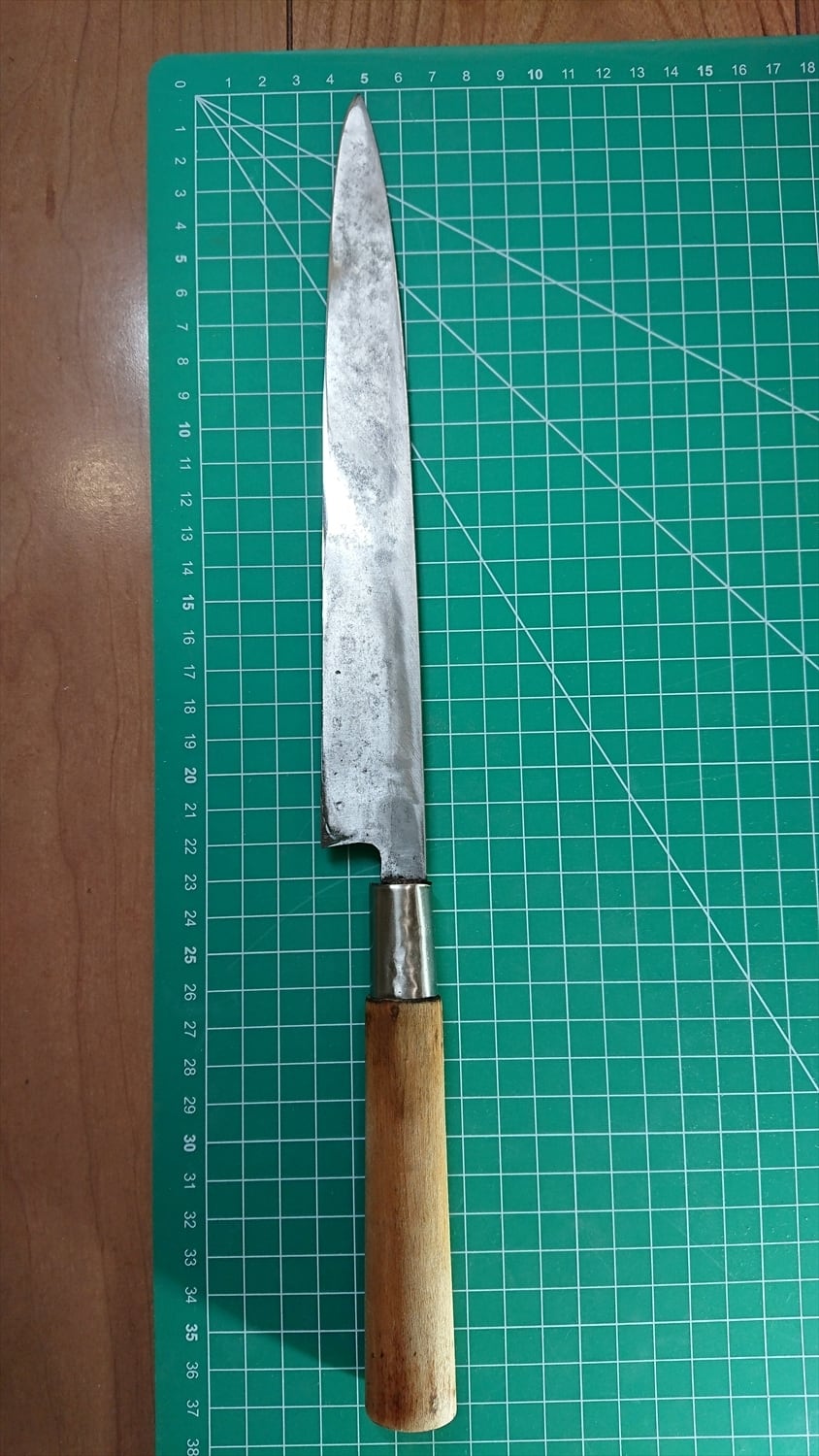 ・商品によっては稀に、除去痕により若干の引っかかりや保管中に微妙に曲がりや反りが出る場合があり。中古包丁の性質上ご理解下さい