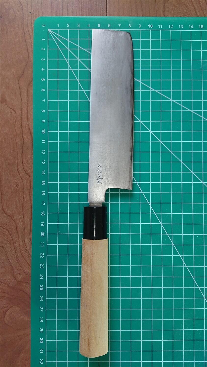 1. o775/銘:吉實/菜切包丁(両刃)/峰厚:2.8/重量:121/作り:鋼?/他: