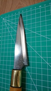 ・商品によっては稀に、除去痕により若干の引っかかりや保管中に微妙に曲がりや反りが出る場合があり。中古包丁の性質上ご理解下さい