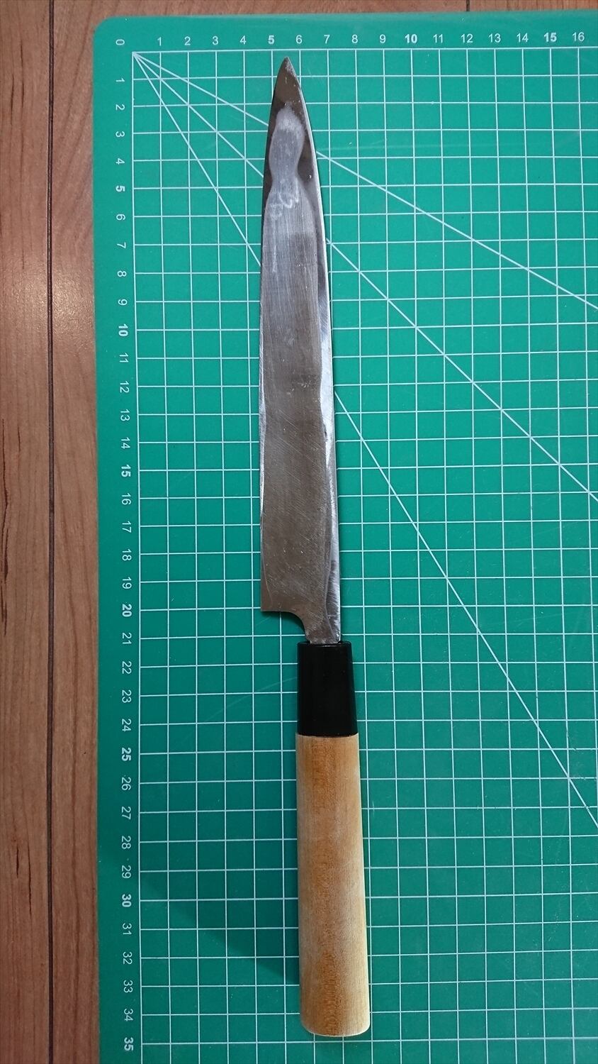 1. o838/銘:関孫六 梅/刺身包丁(片刃)/峰厚:3.4/重量:118/作り:鋼?/他: