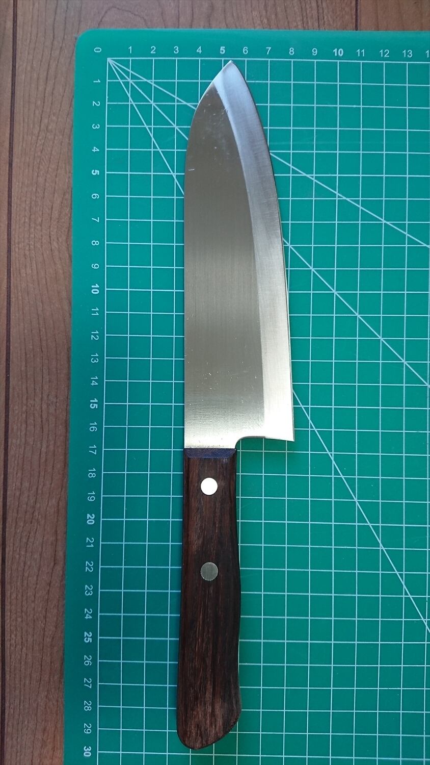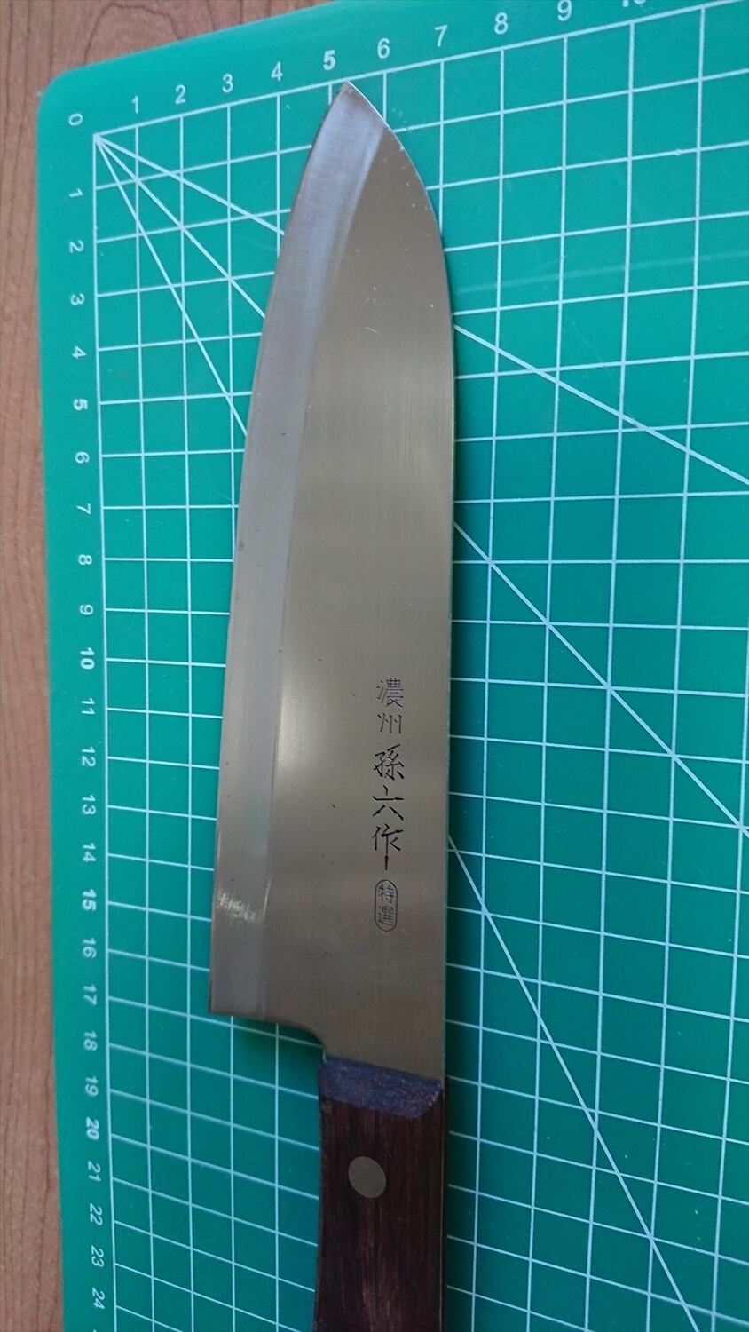 1. o771/銘:濃州孫六作/三徳包丁(両刃)/峰厚:1.4/重量:103/作り:ステンレス?/他:
