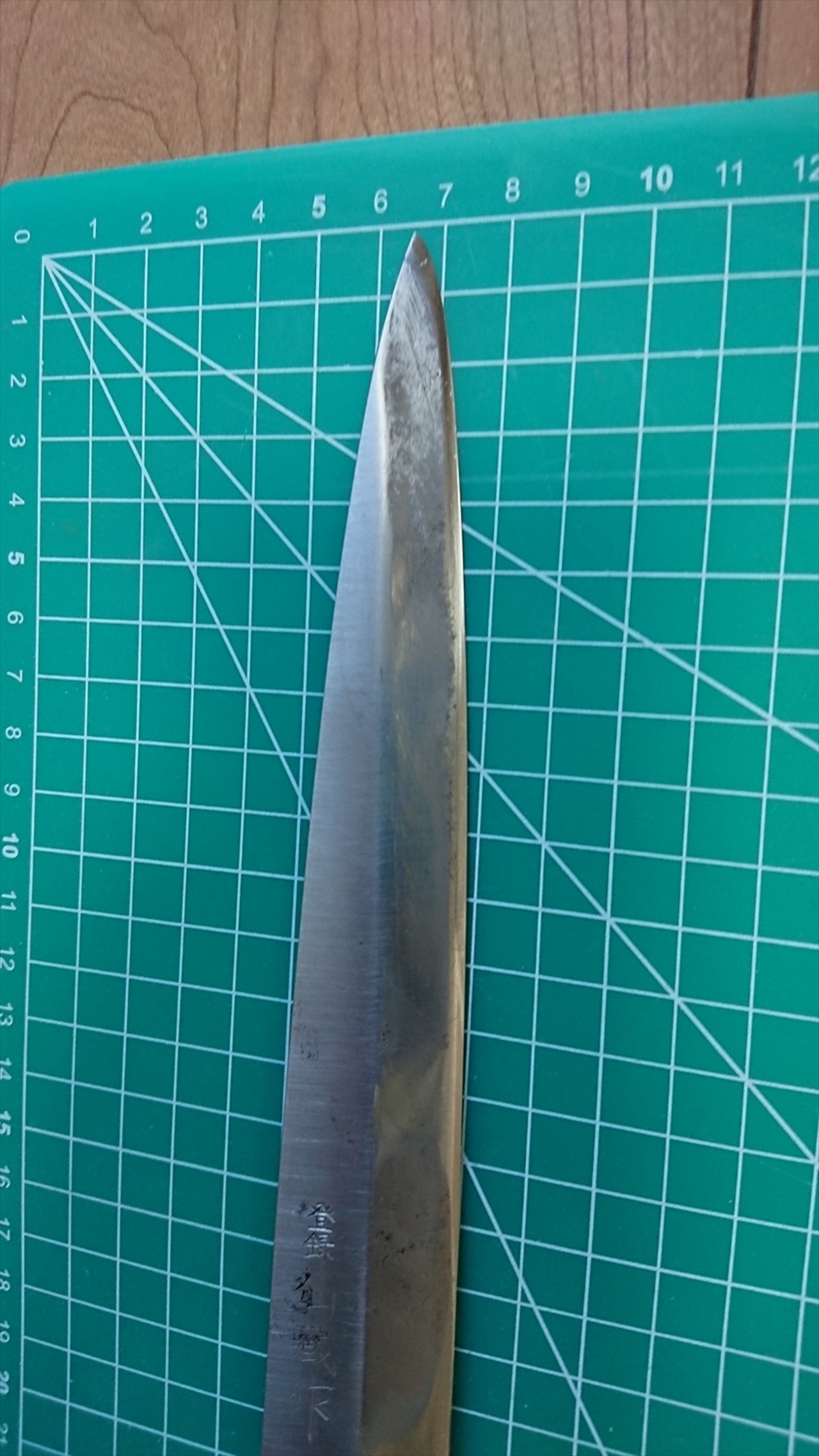 ・商品によっては稀に、除去痕により若干の引っかかりや保管中に微妙に曲がりや反りが出る場合があり。中古包丁の性質上ご理解下さい