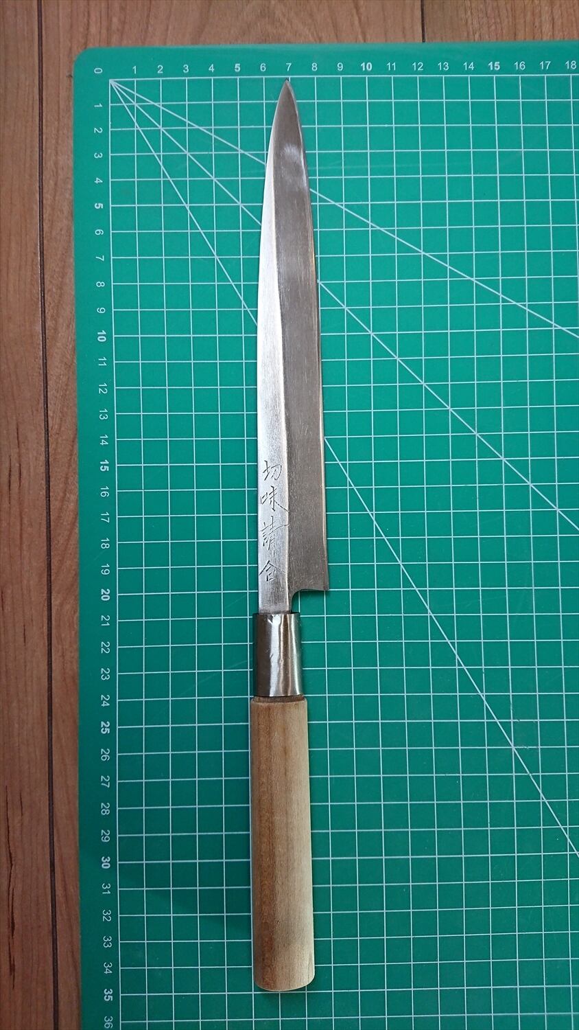 中古o857 切れる刺身包丁 切味 刃長約200mm+2特典