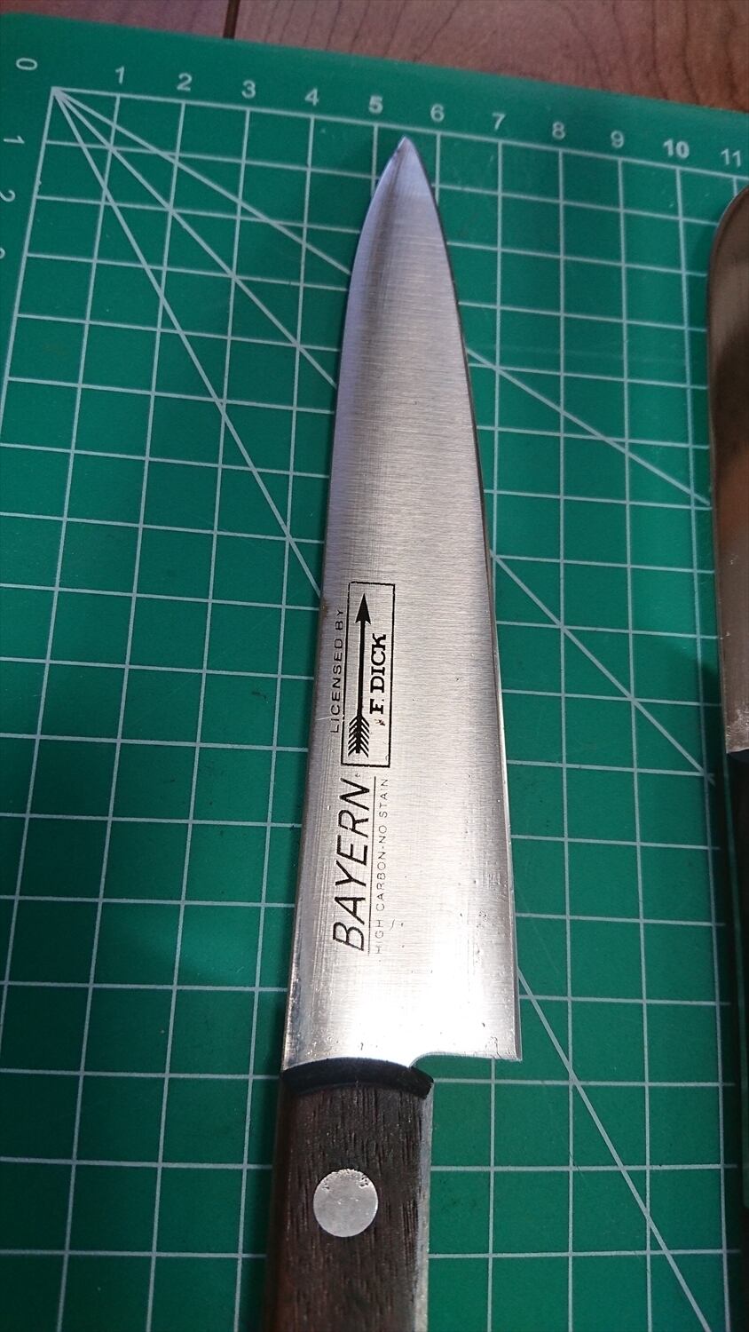1. o919/銘:F.DICK/ペティナイフ(両刃)/峰厚 アゴ上:1.3/重量:43/作り:HIGH CARBON -NO STAIN/他: