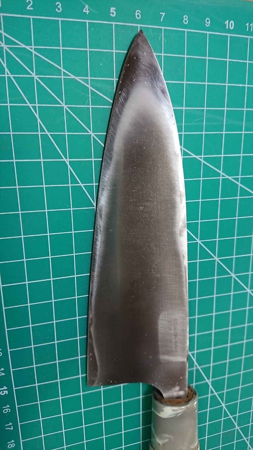 ・商品によっては稀に、除去痕により若干の引っかかりや保管中に微妙に曲がりや反りが出る場合があり。中古包丁の性質上ご理解下さい