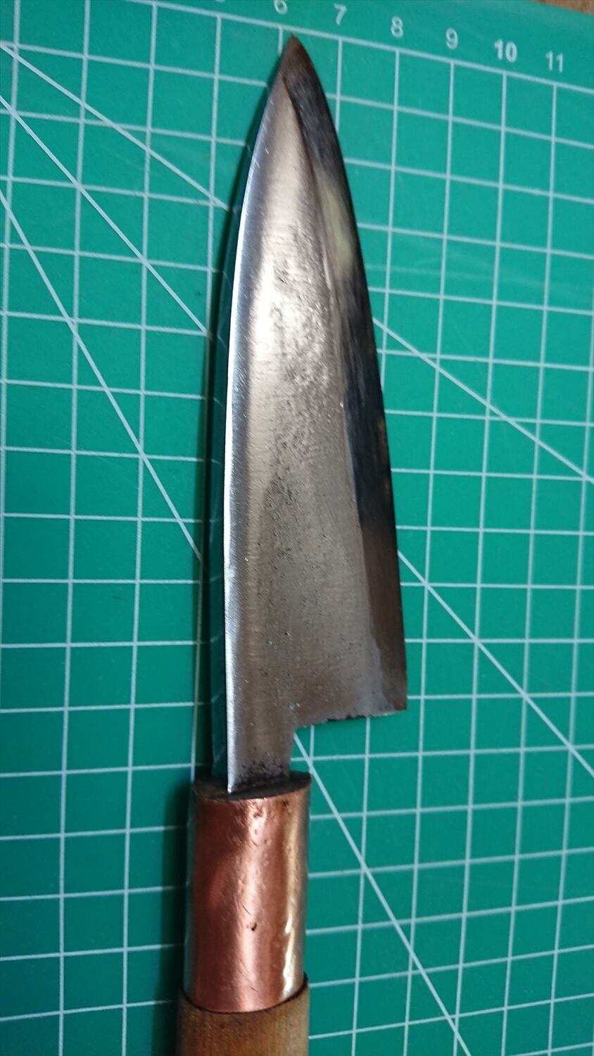 1. o952/銘:銘?/小出刃包丁(片刃)/峰厚 アゴ上:7.5/重量:127/作り:鋼?/他: