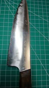 ・商品によっては稀に、除去痕により若干の引っかかりや保管中に微妙に曲がりや反りが出る場合があり。中古包丁の性質上ご理解下さい