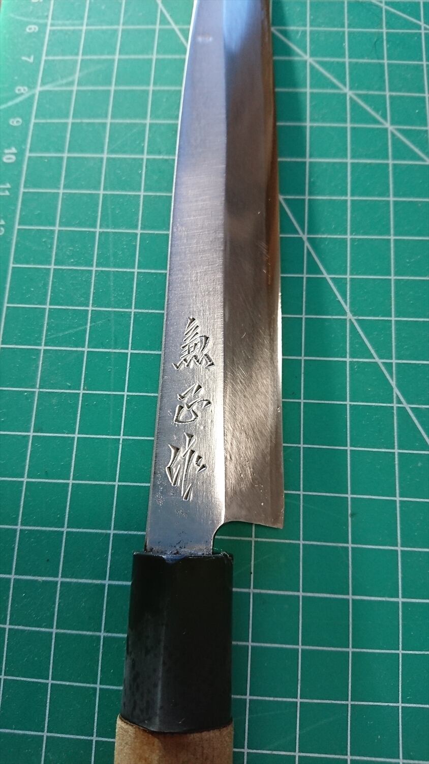 1. o1006/銘:魚正作/刺身包丁(片刃)/峰厚 アゴ上:3.1/重量:96/作り:鋼?/他: