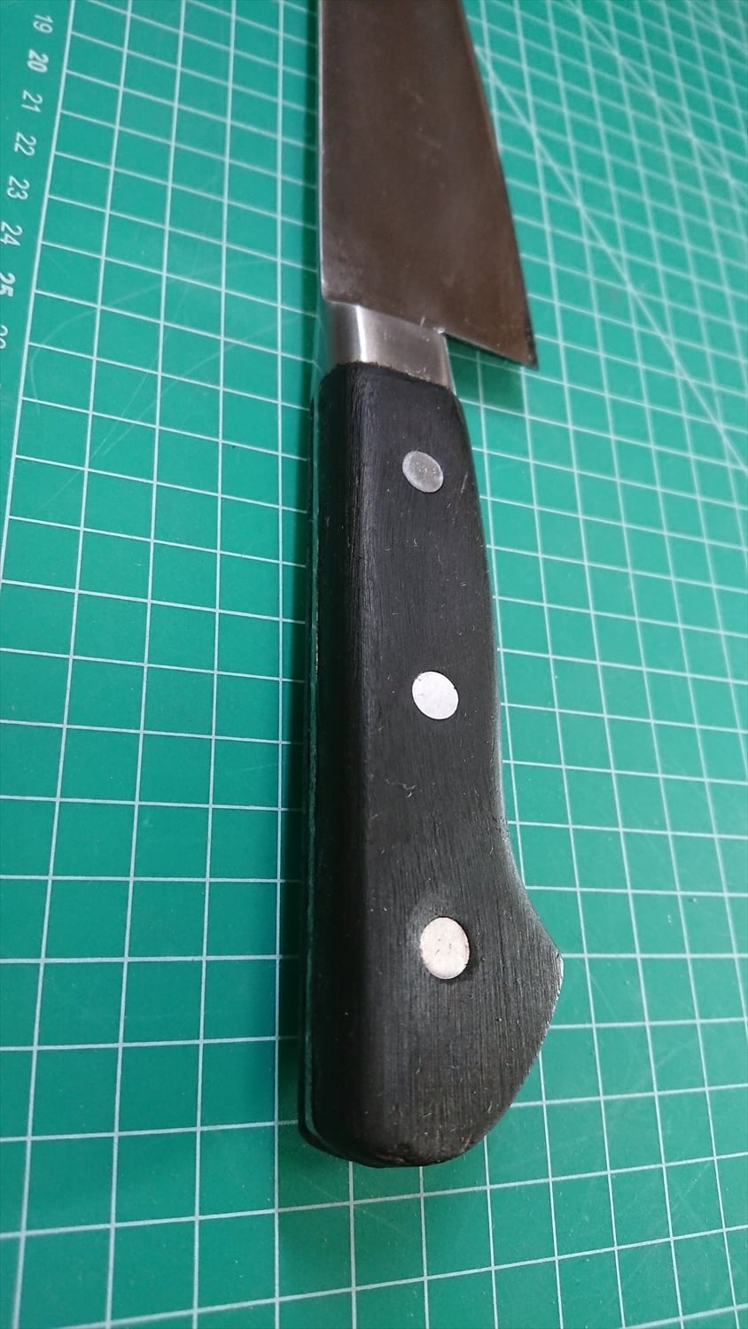 ・商品によっては稀に、除去痕により若干の引っかかりや保管中に微妙に曲がりや反りが出る場合があり。中古包丁の性質上ご理解下さい