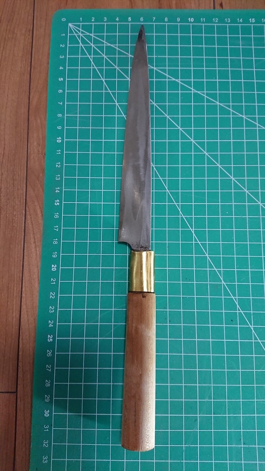 1. o972/銘:堺清秀/刺身包丁(片刃)/峰厚 アゴ上:3.7/重量:88/作り:別打(白鋼?) 特製/他: