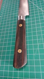 1. o1111/銘:正房/筋引包丁(両刃)/峰厚 アゴ上:1.2/重量:123/作り:鋼?/他:柄にM?と彫り有り